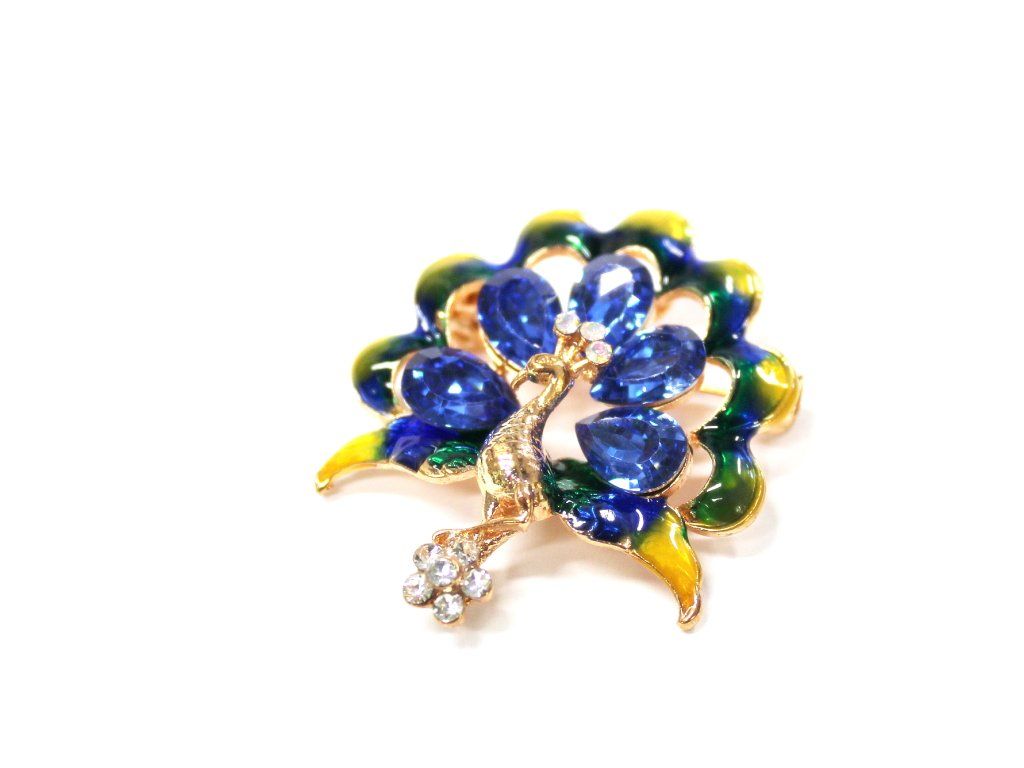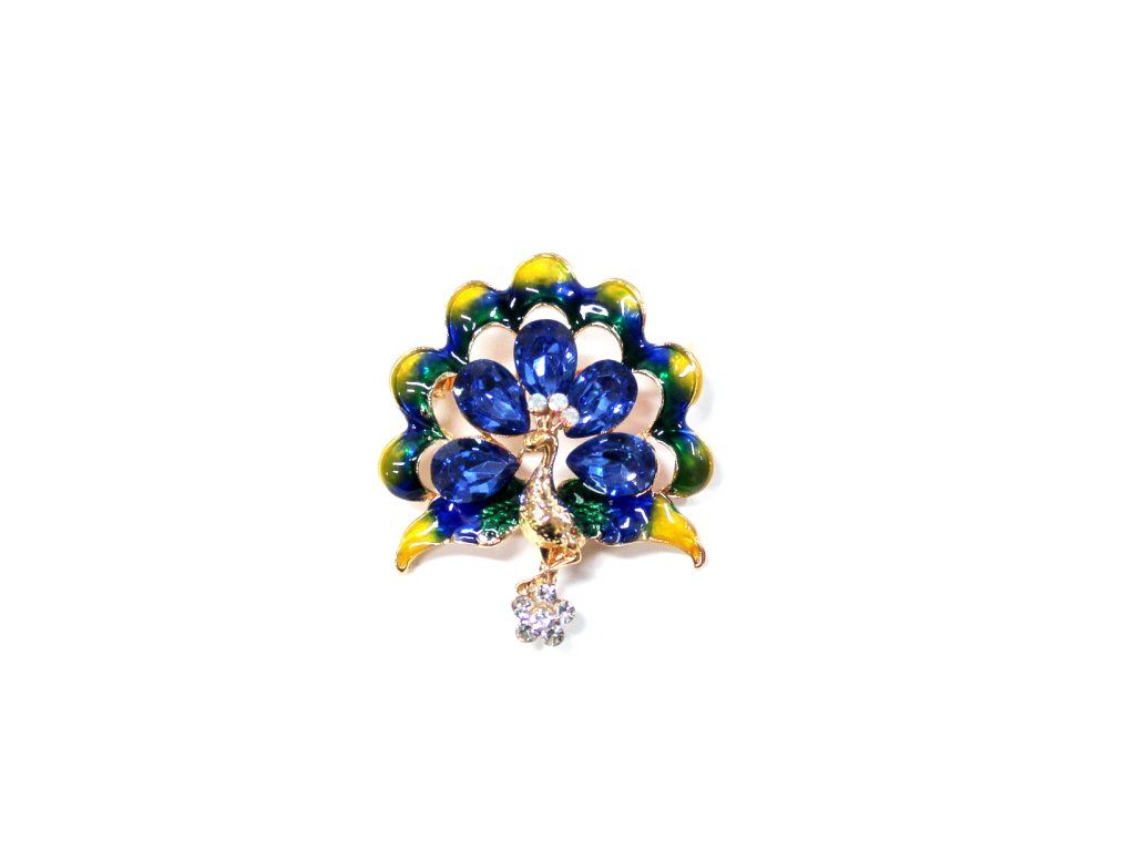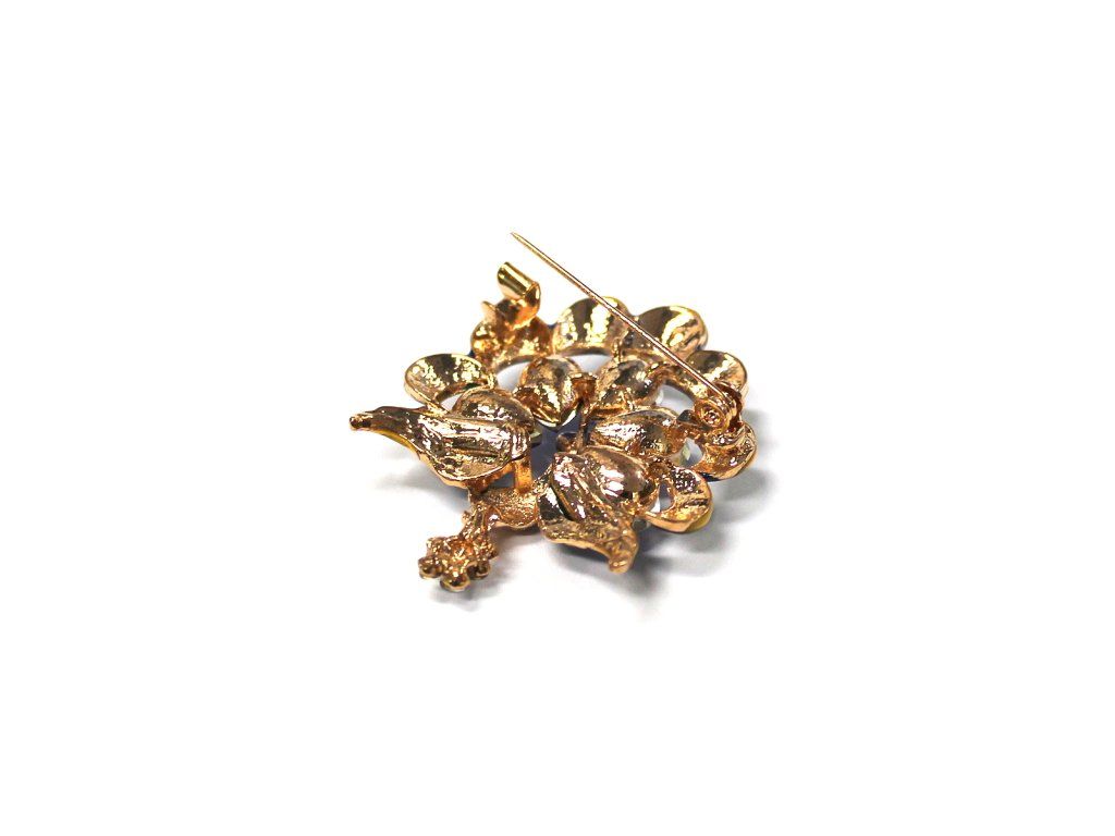 Zlatý kov lemovaný ozdobnými kamínky a zapínáním vzadu na špendlík.