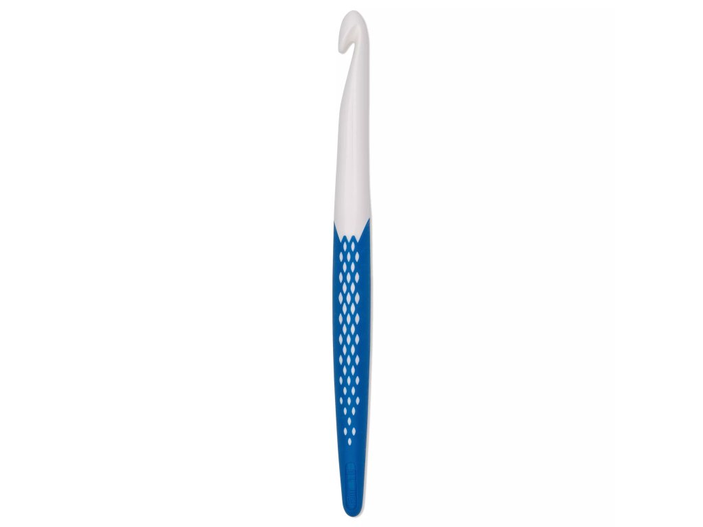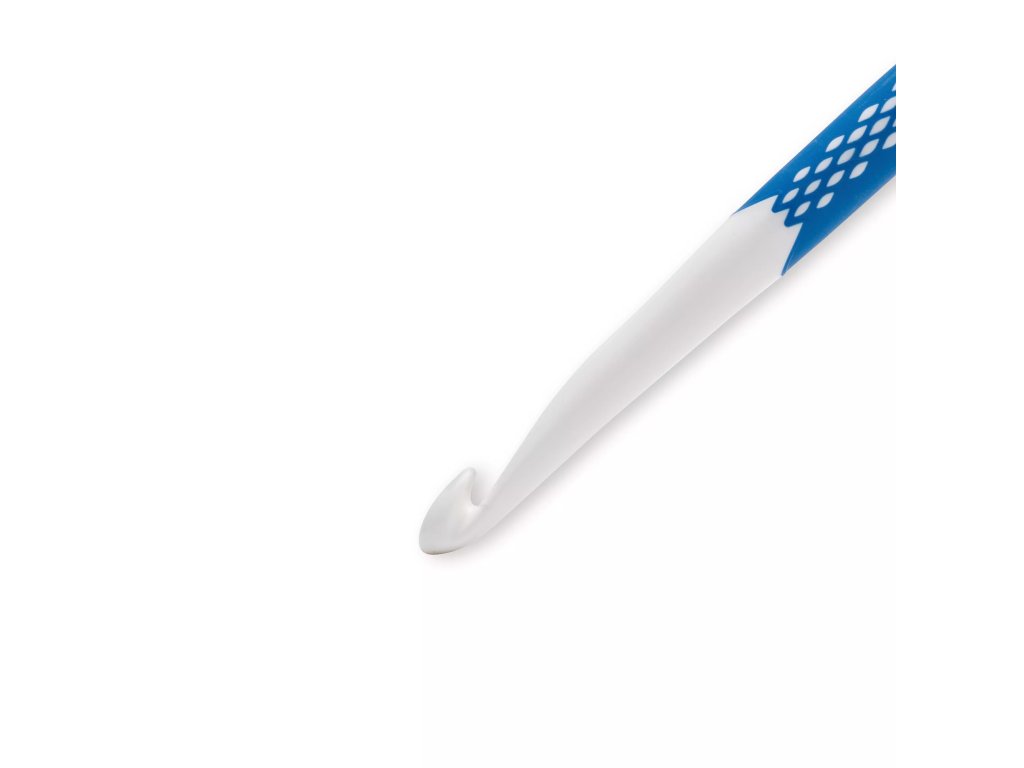 Pletací háček od značky PRYM se silikonovou ergonomickou rukojetí pro snadné háčkování.
