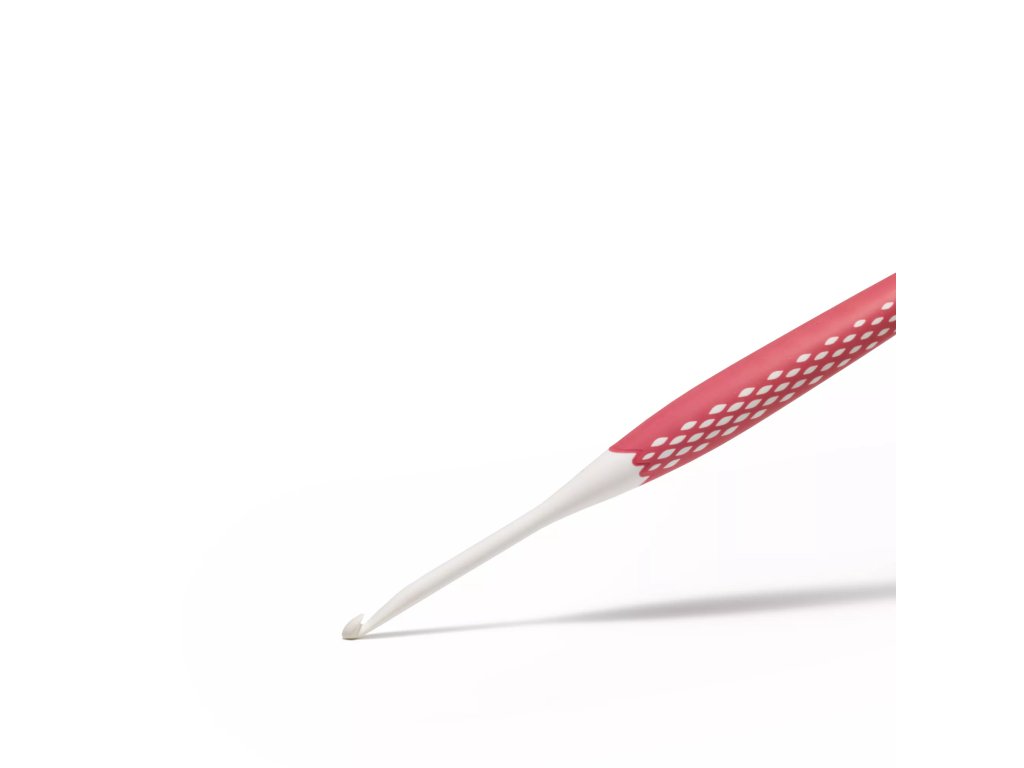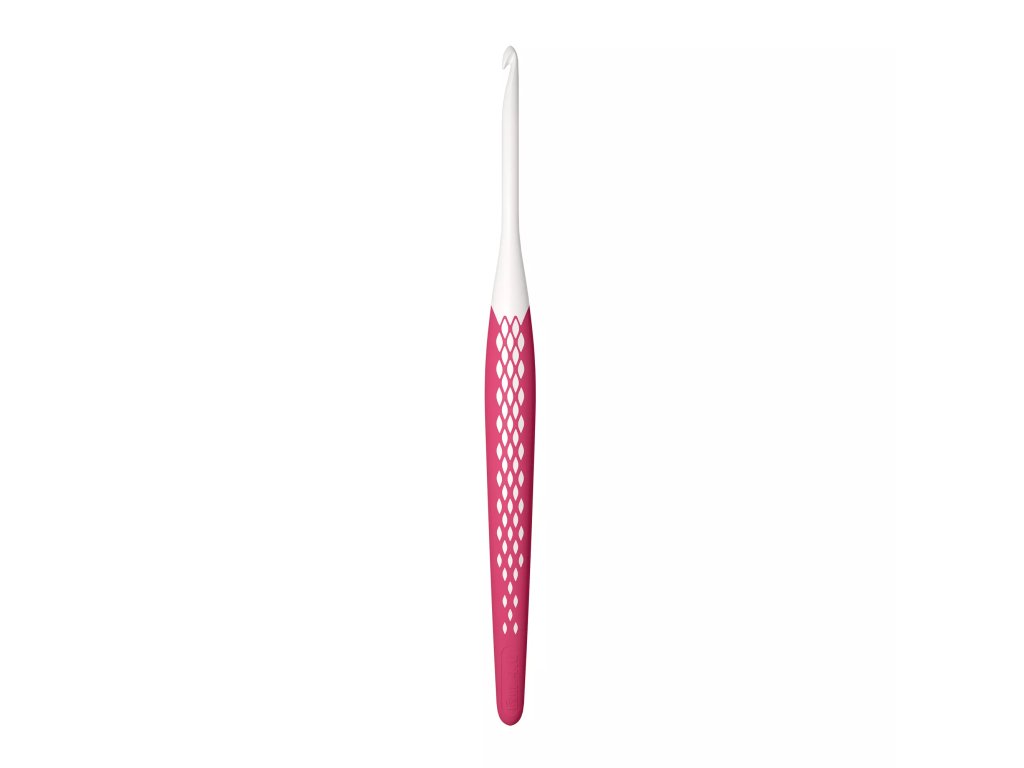 Pletací háček od značky PRYM se silikonovou ergonomickou rukojetí pro snadné háčkování.