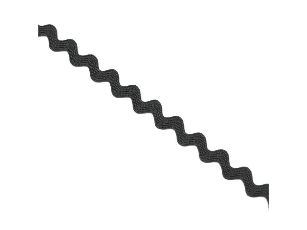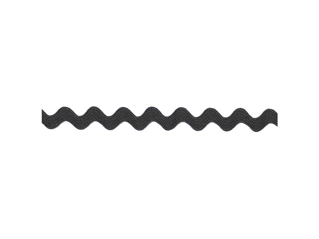 Klasická tenká vlnitá prýmka, ideální na lemování a dekorací našíváním na textil a další předměty. V černé barvě.