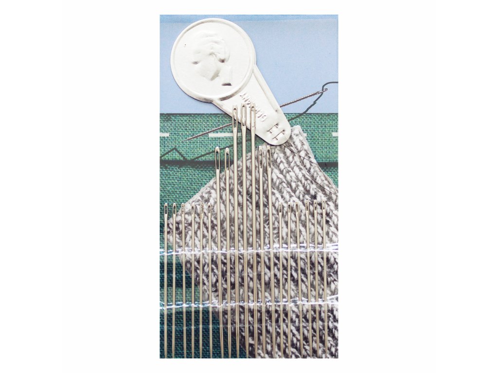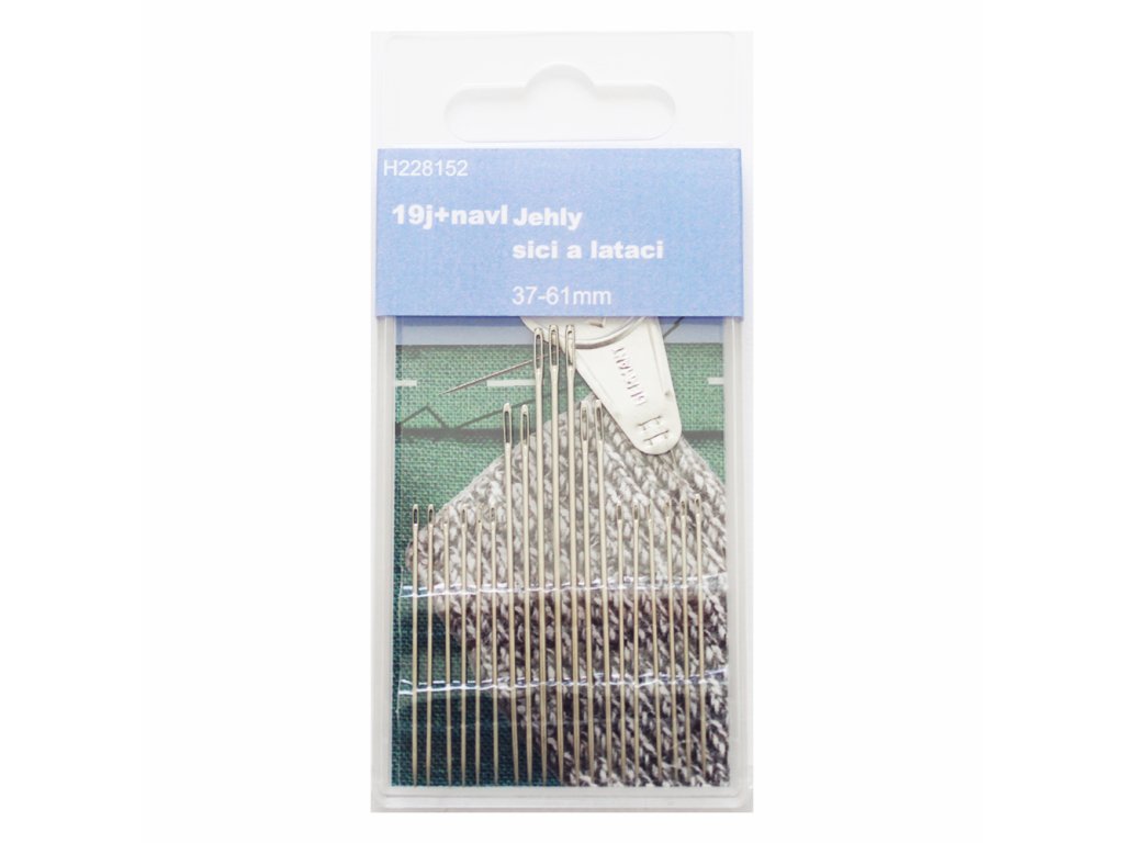 Balení obsahuje 19 šicích a látacích jehel o délce 37 - 61 mm a 1ks navlékač.