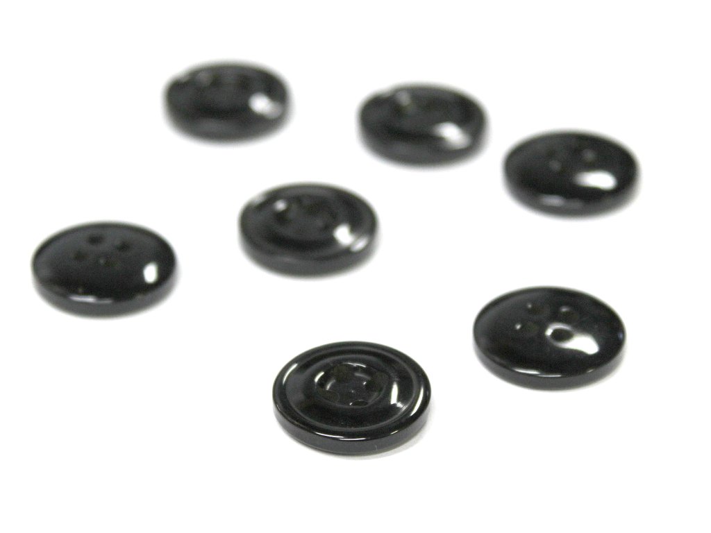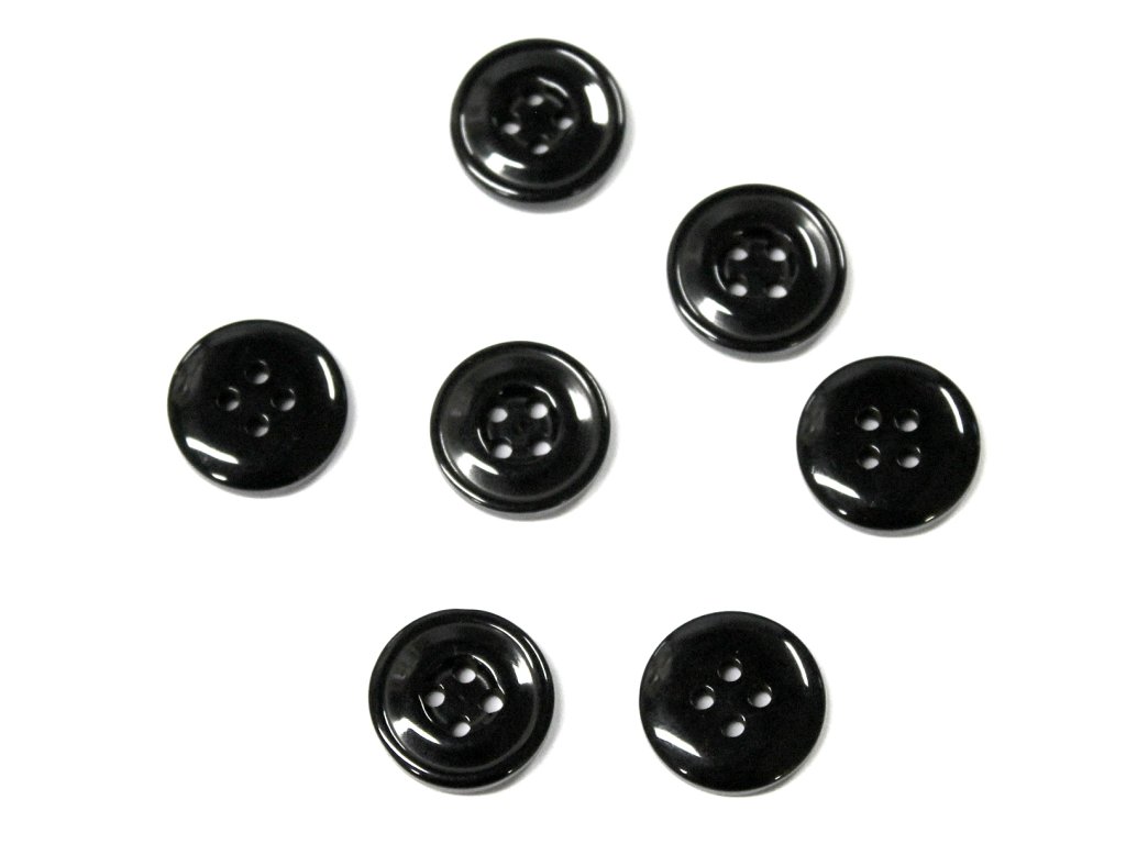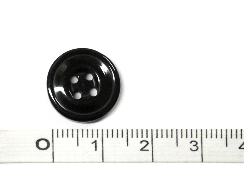 Knoflík 00262 15mm čtyřdírkový lesklý černý vel. 24"