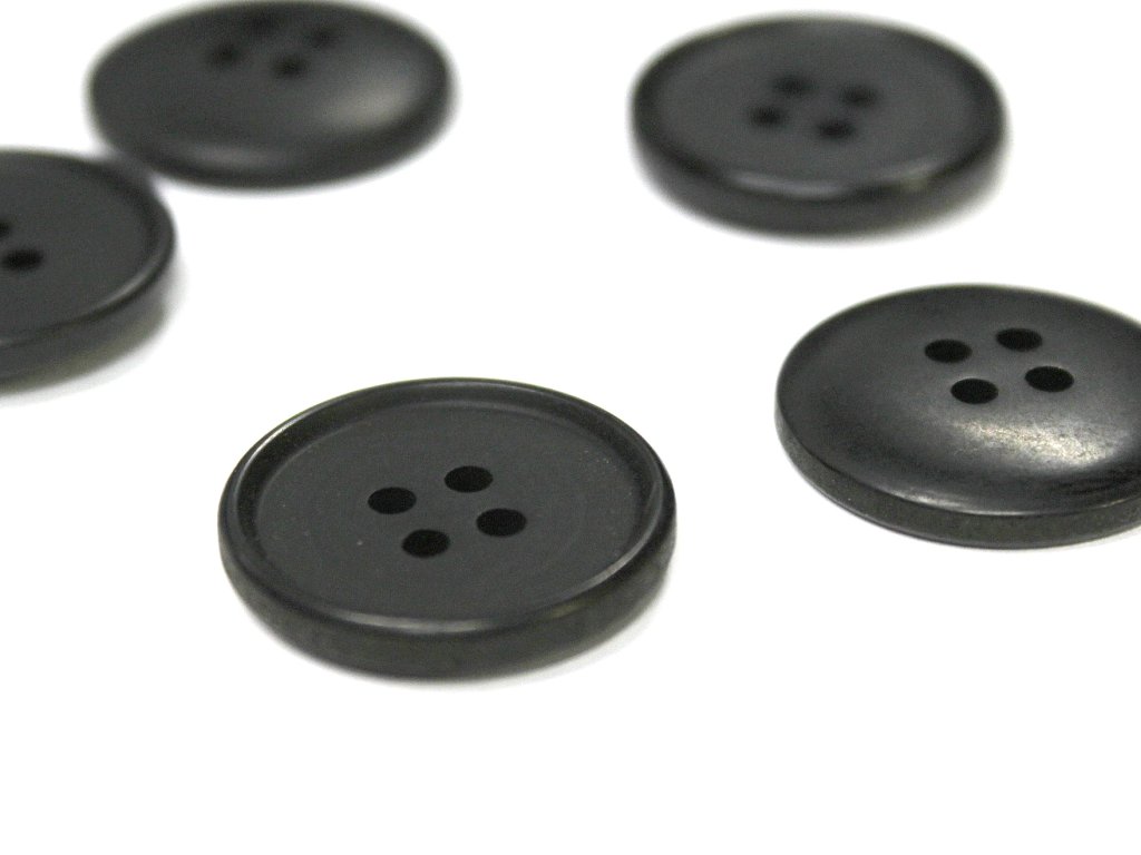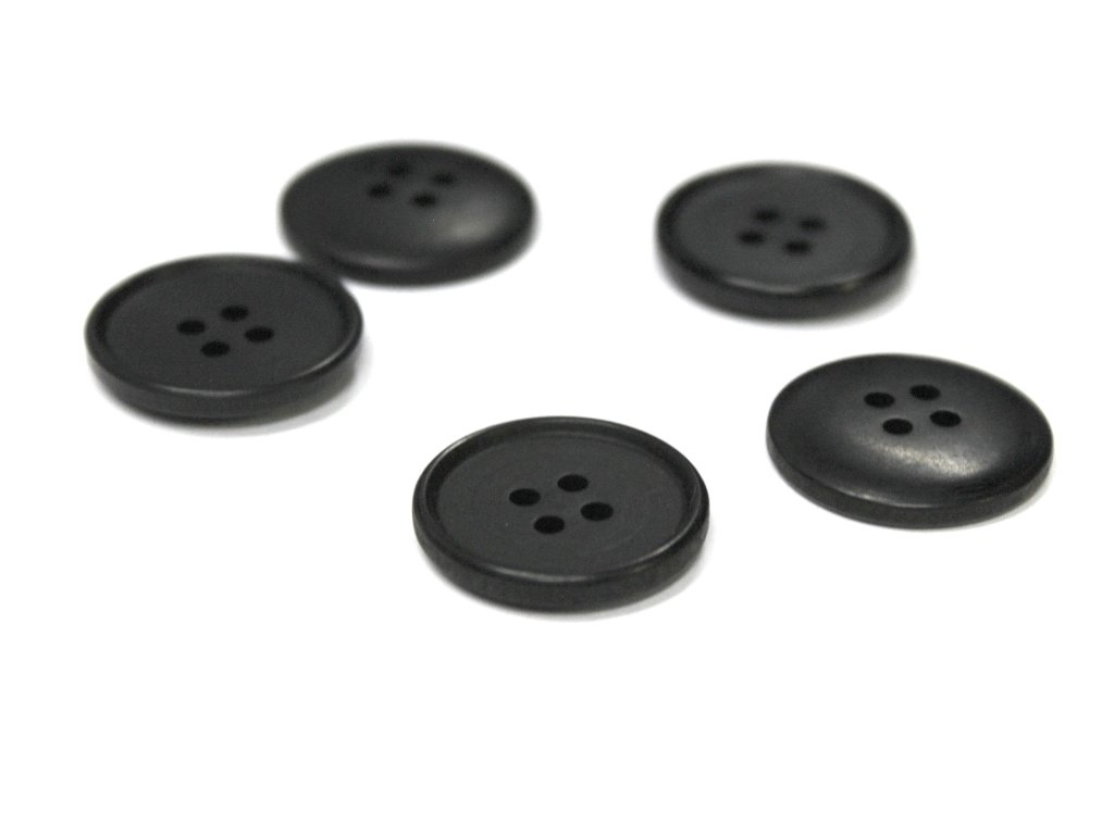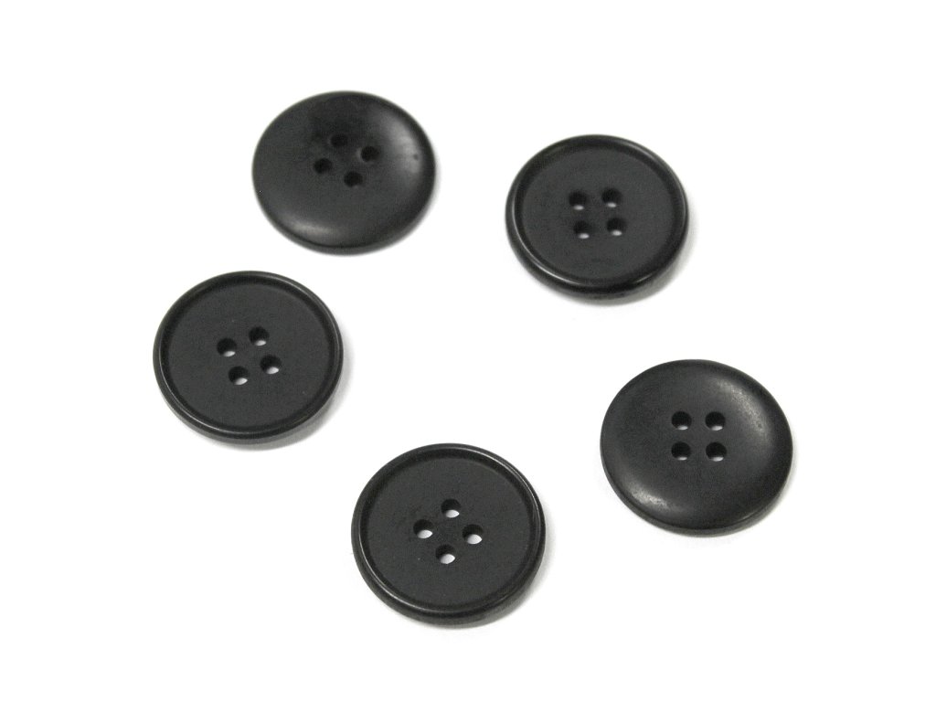 Klasický knoflík s tenkým okrajem, čtyřdírkový, matný.