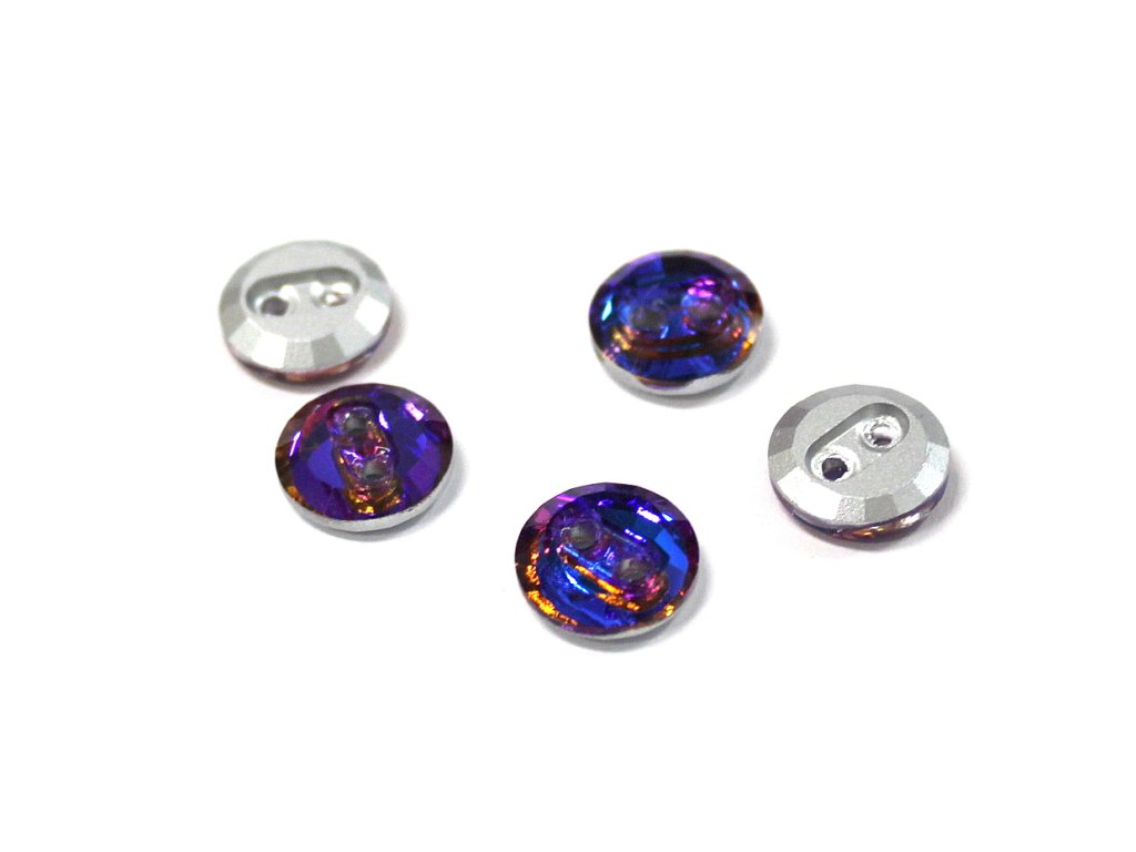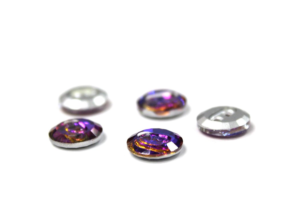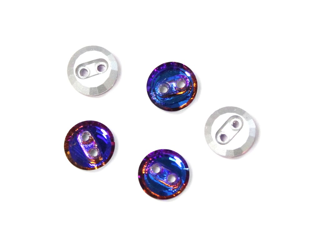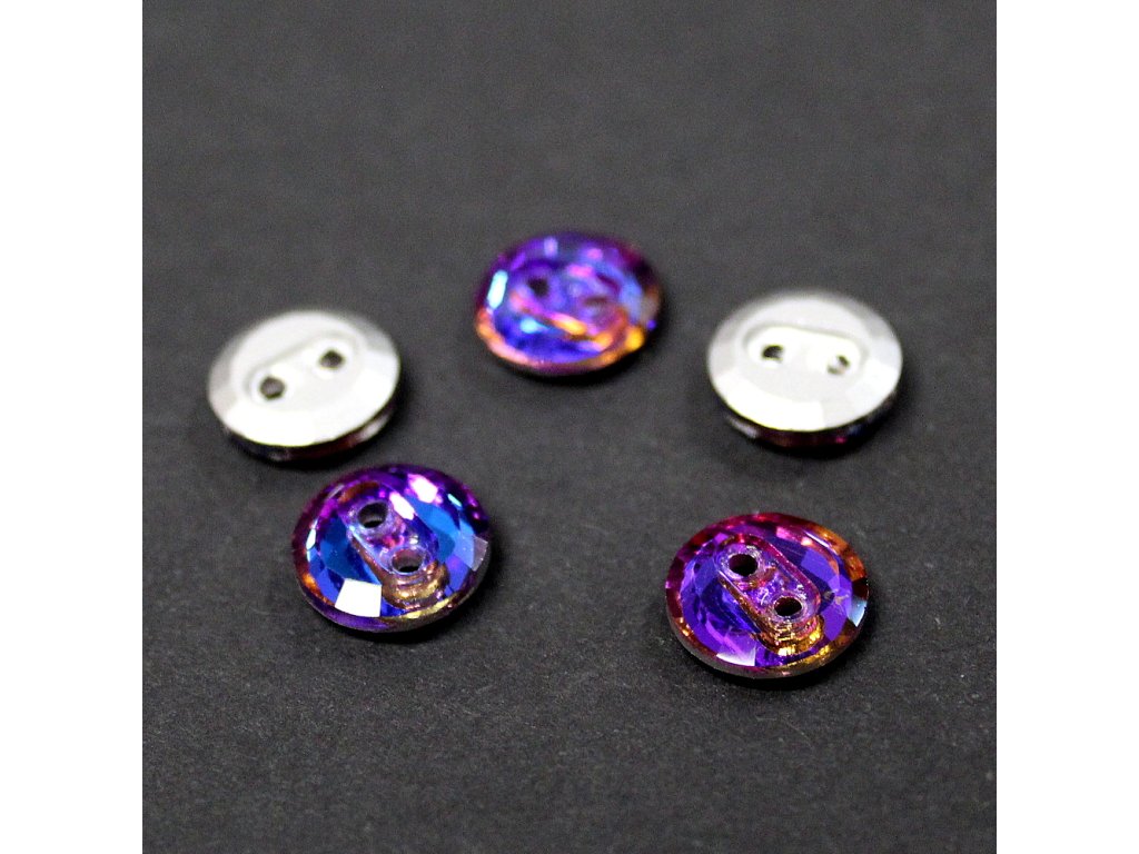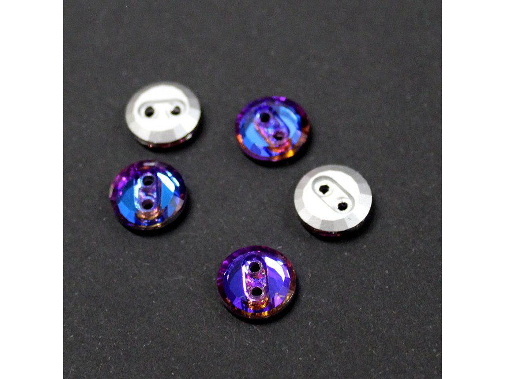 Plochý skleněný ozdobný knoflík, se dvěma dírkama na přišití.