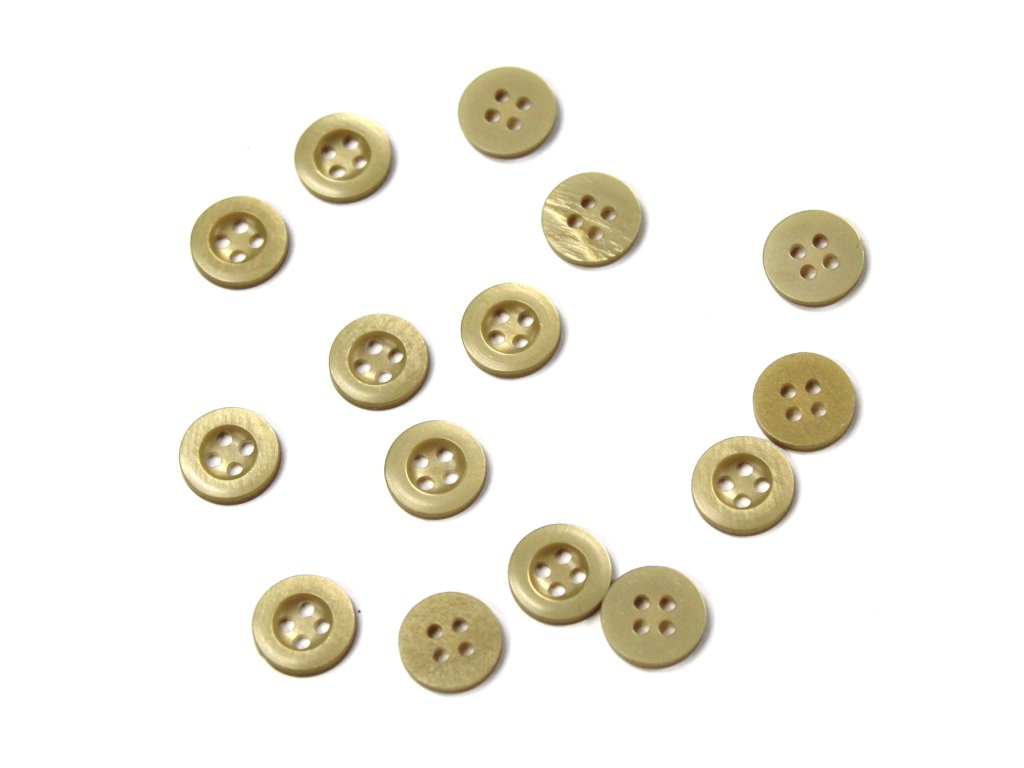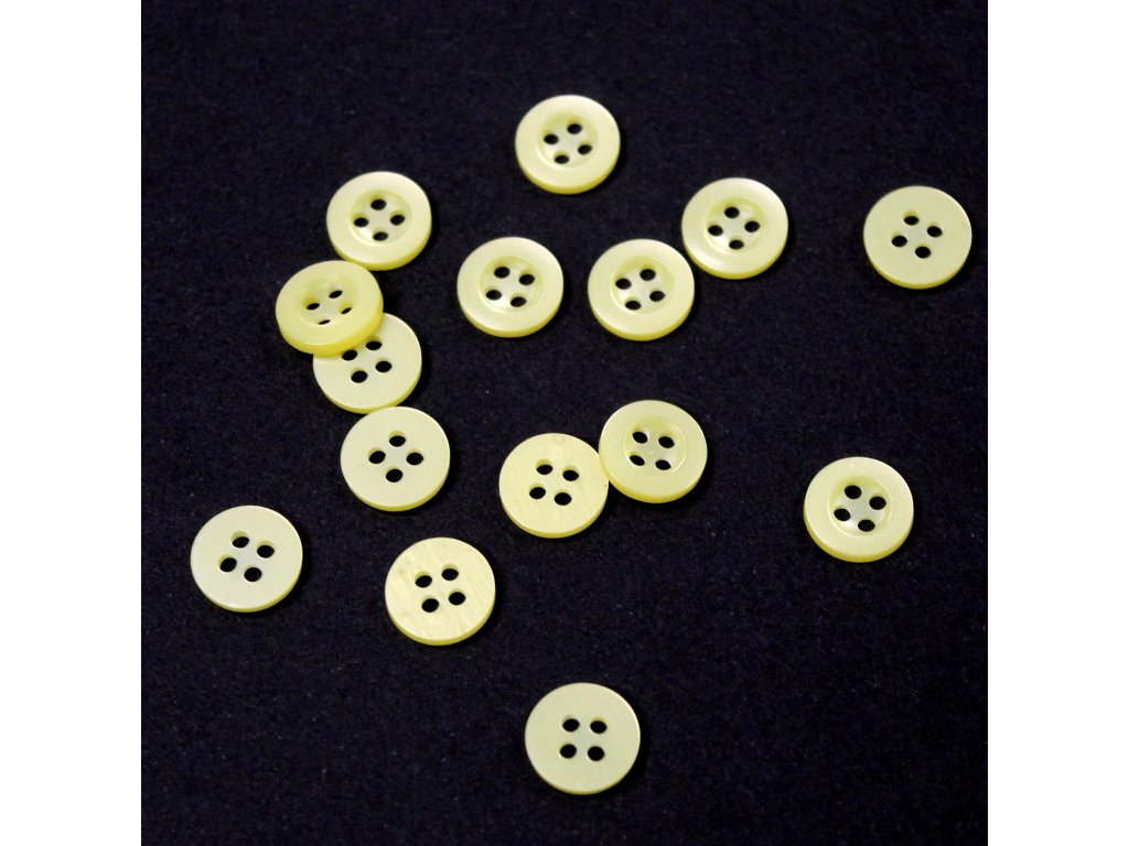 Klasický košilový knoflík na našívání čtyřdírkový, lesklý s perleťovým efektem.