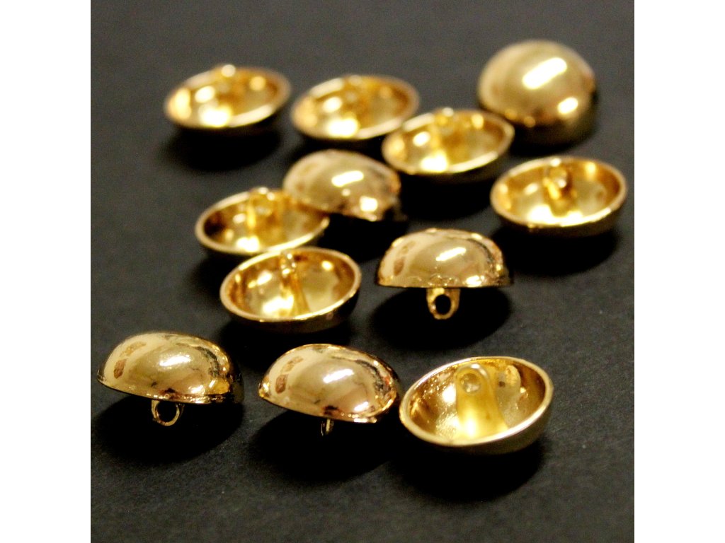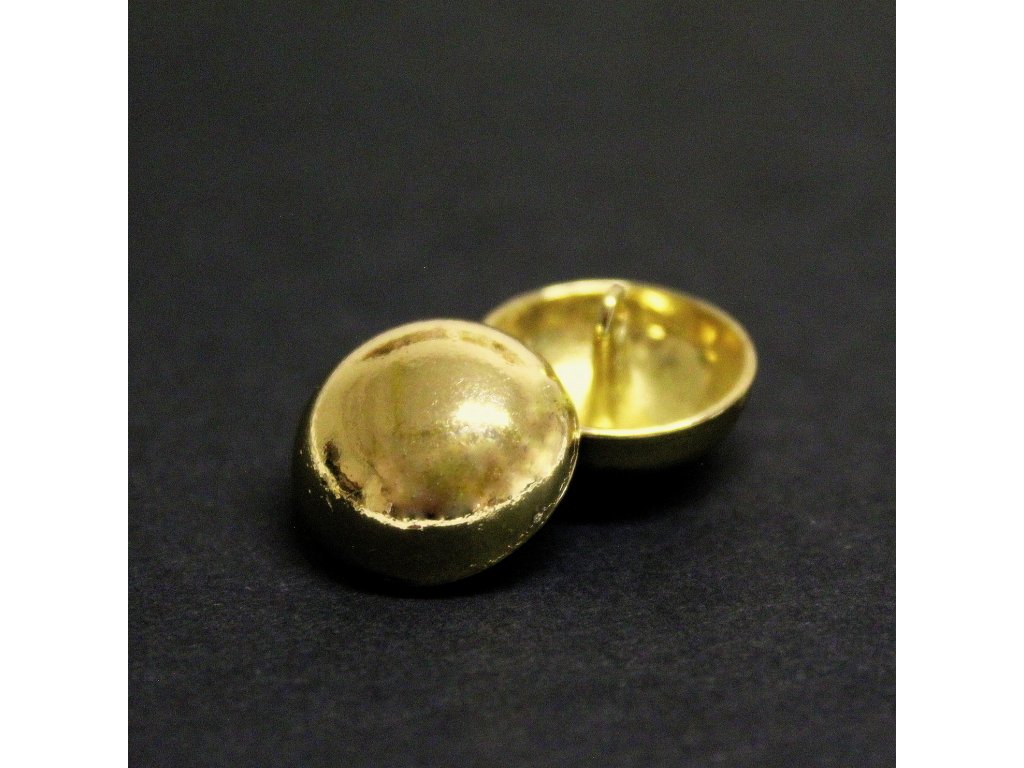 Klasický půlkulatý kovový knoflík s očkem vespod na přišití, ve zlaté barvě a velikosti 17mm.