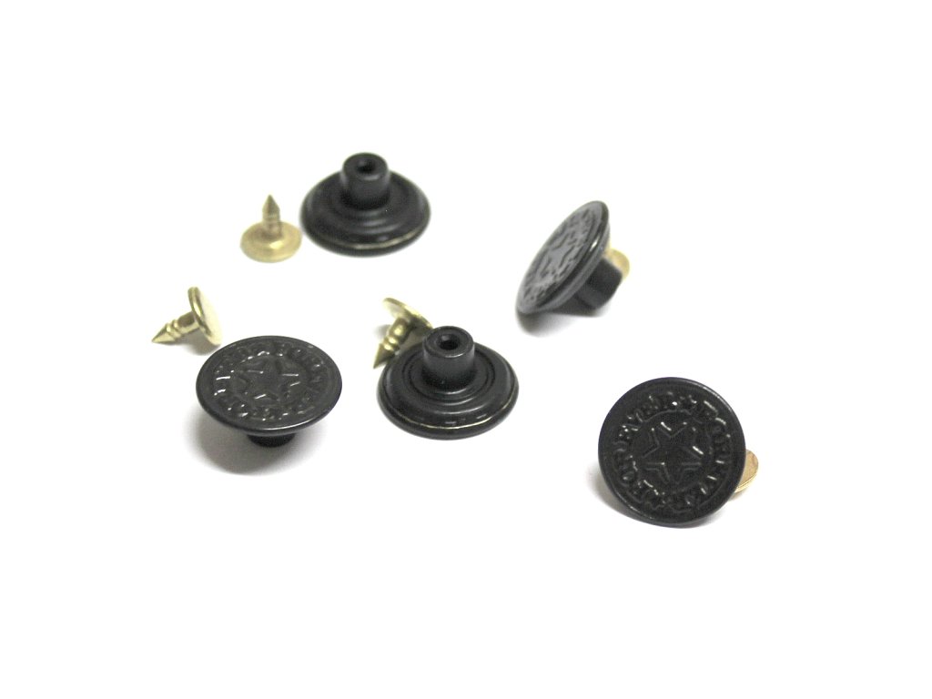 Knoflík natloukací jeansový 17mm FOREVER hvězda černá