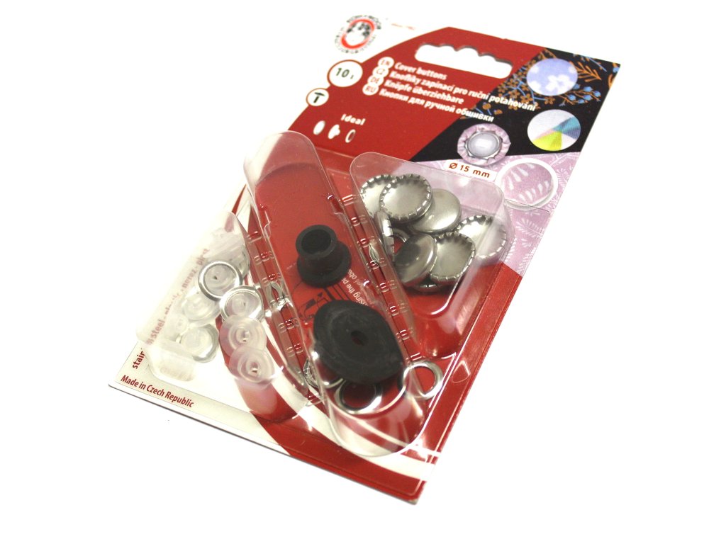 Balení obsahuje sadu na vlastní výrobu knoflíků k přišití zespodu.