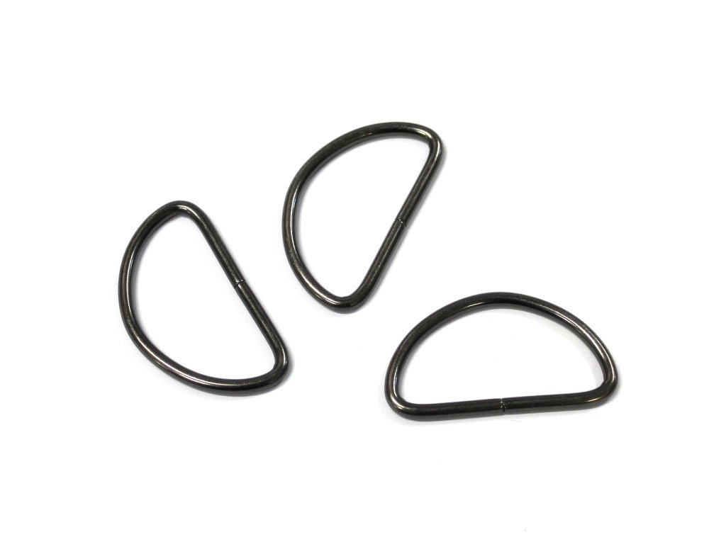 Kovový polokroužek na upevnění popruhů a stuh u kabelek, tašek, batohů a pro mnoho dalšího využití.