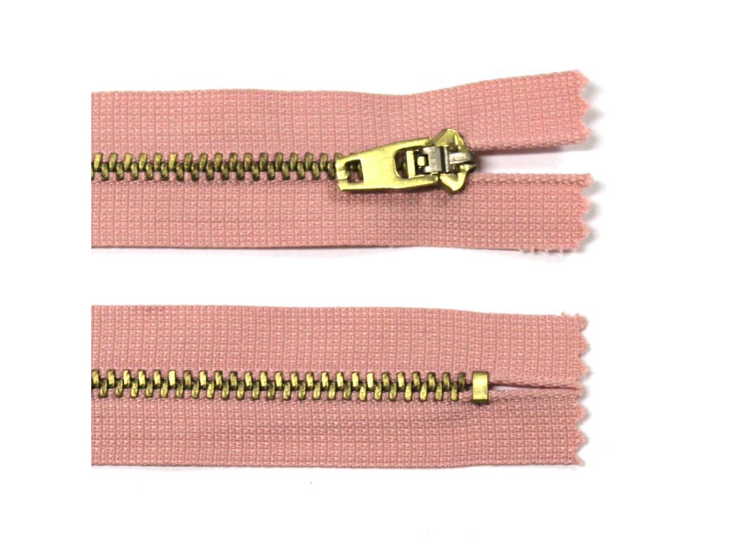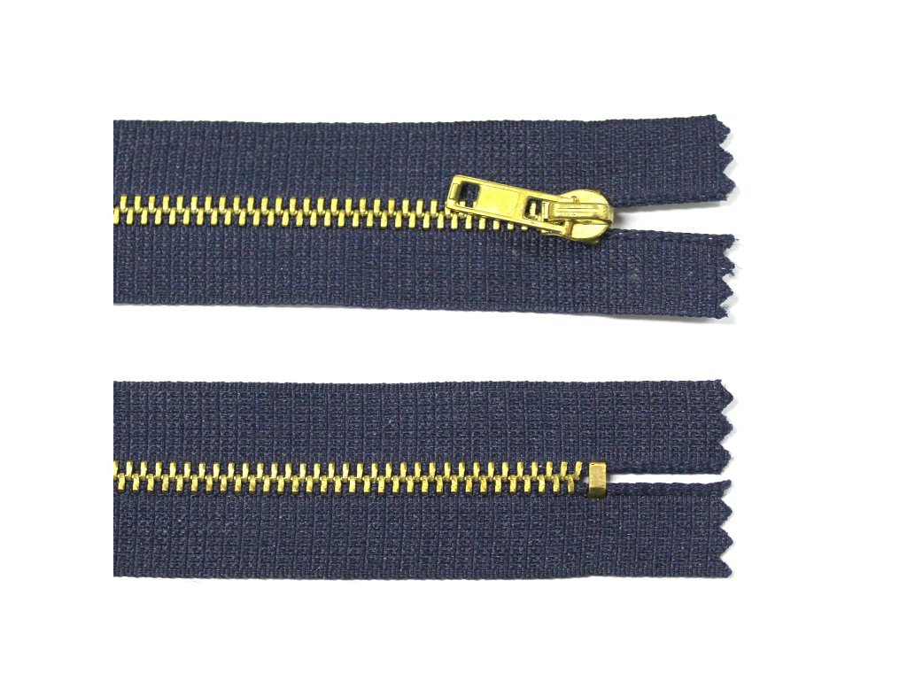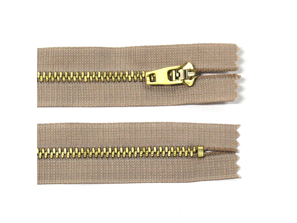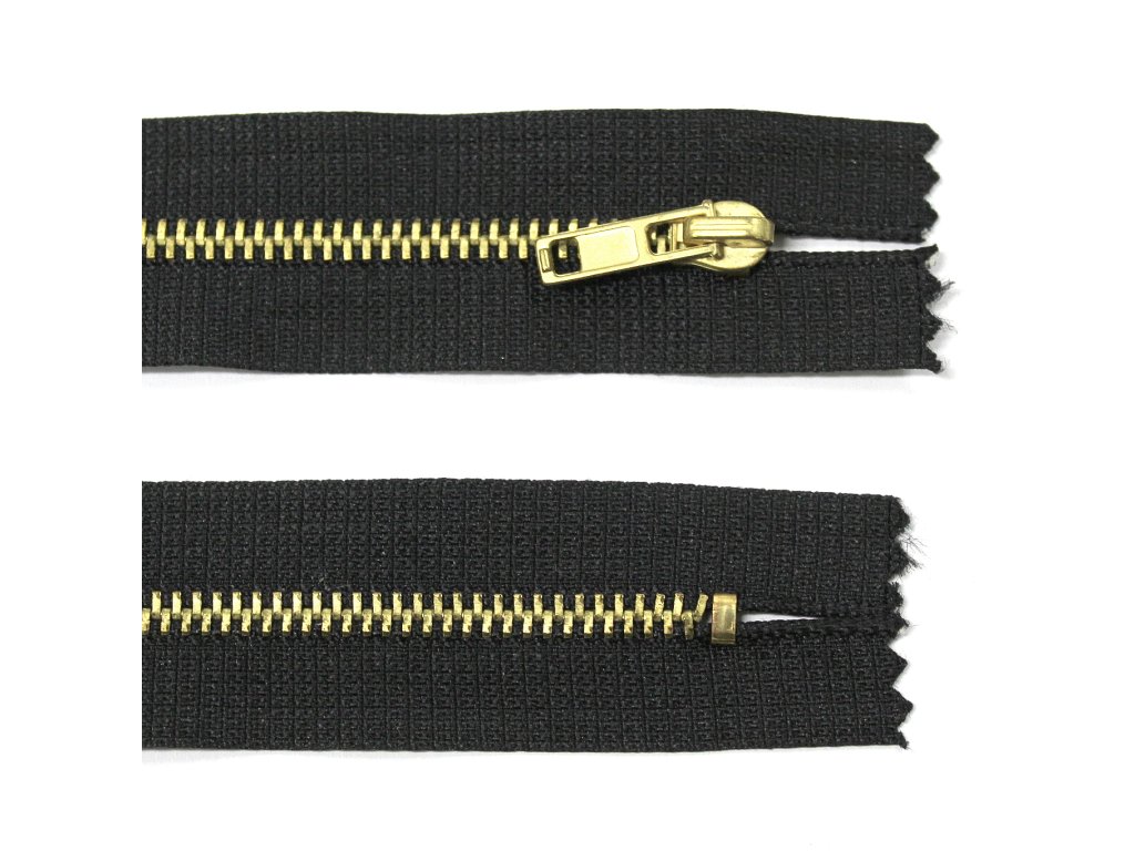Kovový zip no.3 nerozepínací 10cm mosazné zlaté zoubky - více barev