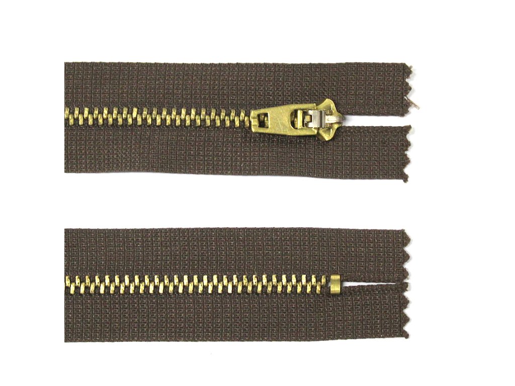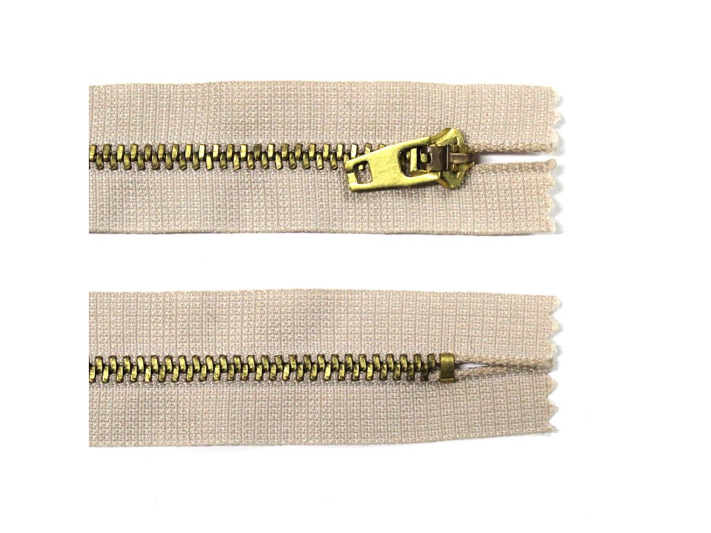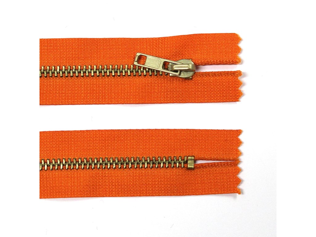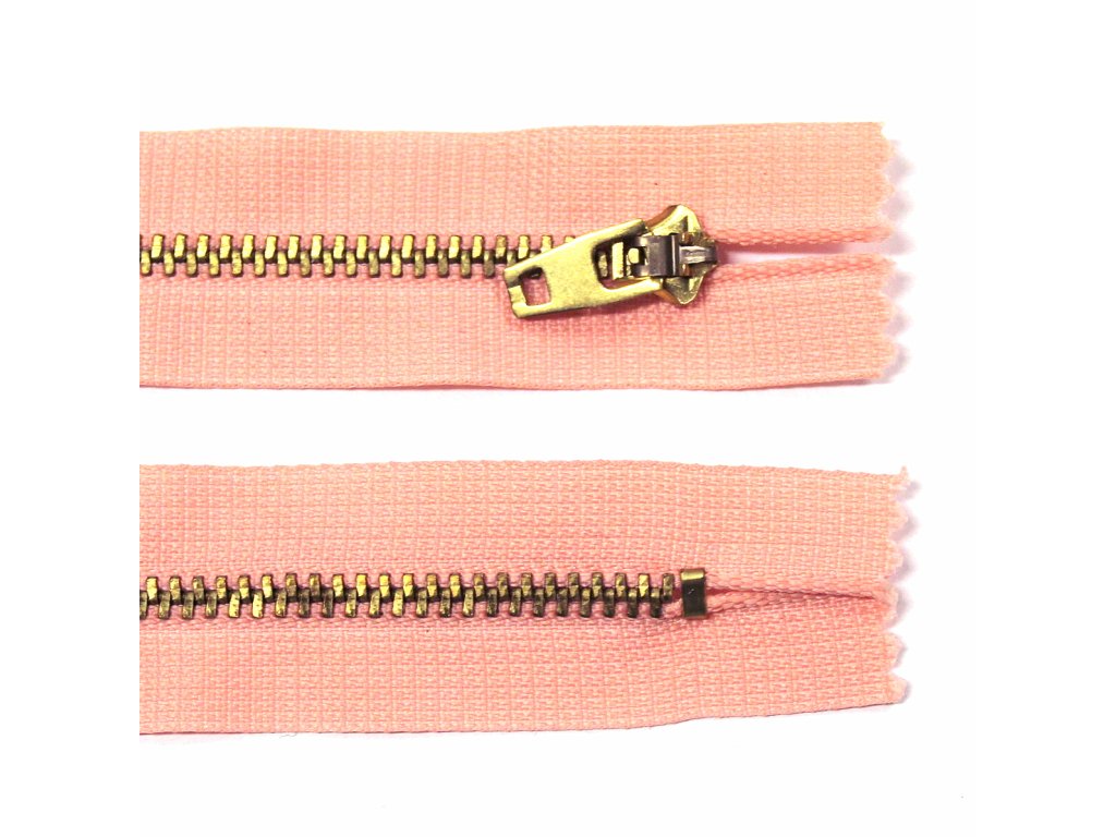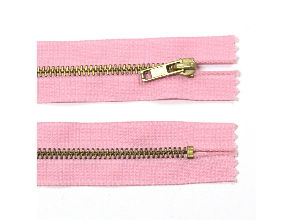 Kovový zip no.3 nerozepínací 10cm mosazné zlaté zoubky - více barev