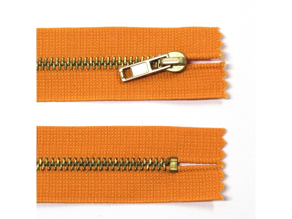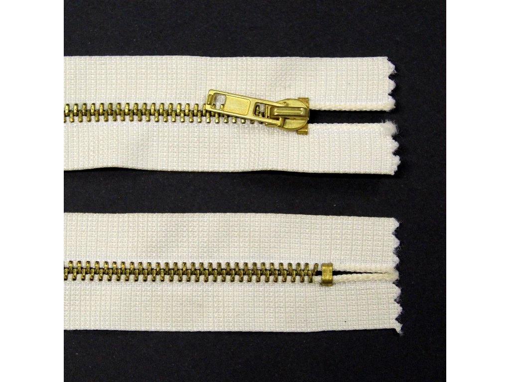 Slabý kovový zip nerozepínací no. 3, ve variantě mosaz - zlaté zoubky.