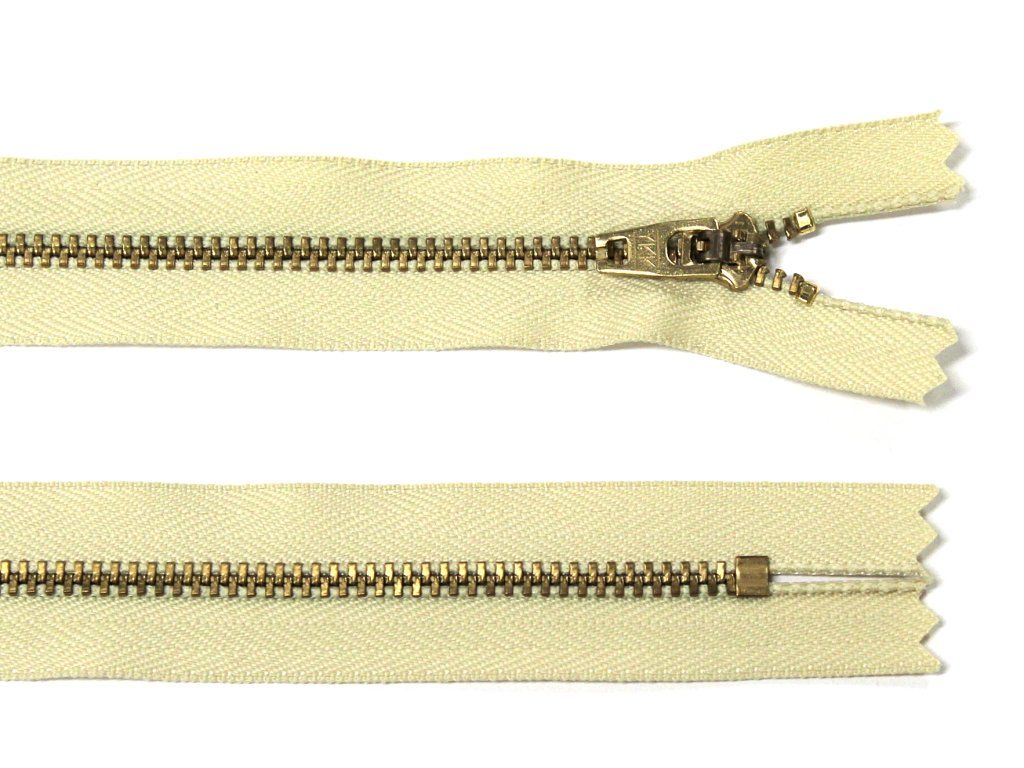 Kovový zip no.3 nerozepínací 16cm krémový (zlaté zoubky) YKK