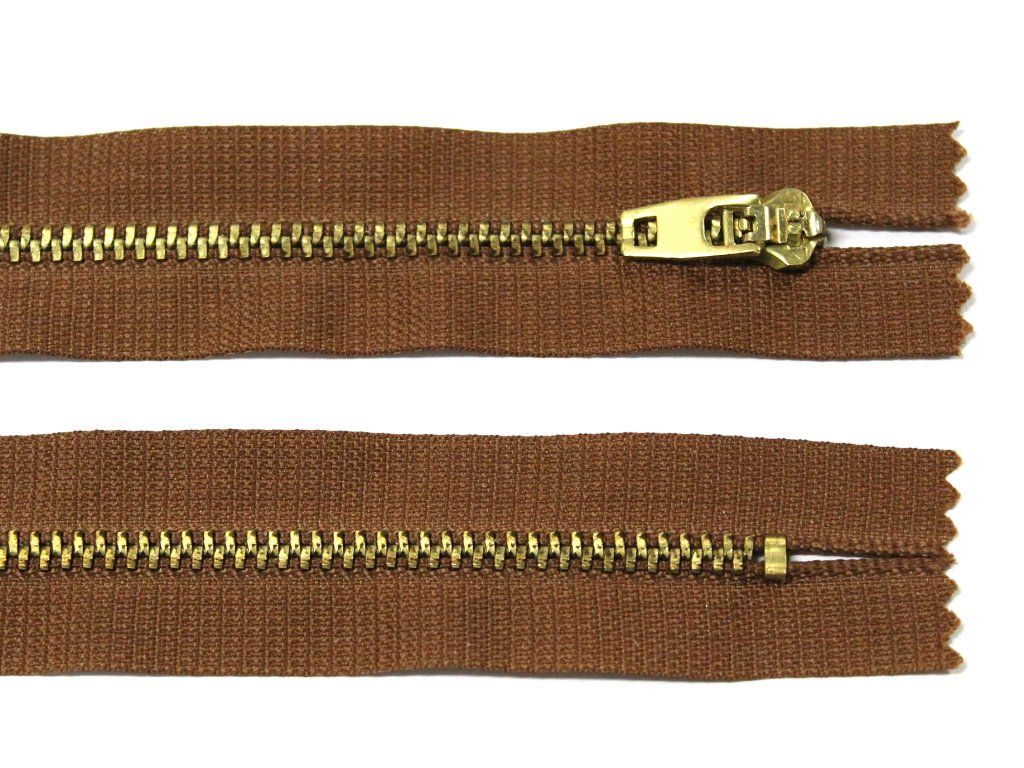 Kovový zip no.3 nerozepínací 16cm světle hnědý (zlaté zoubky)