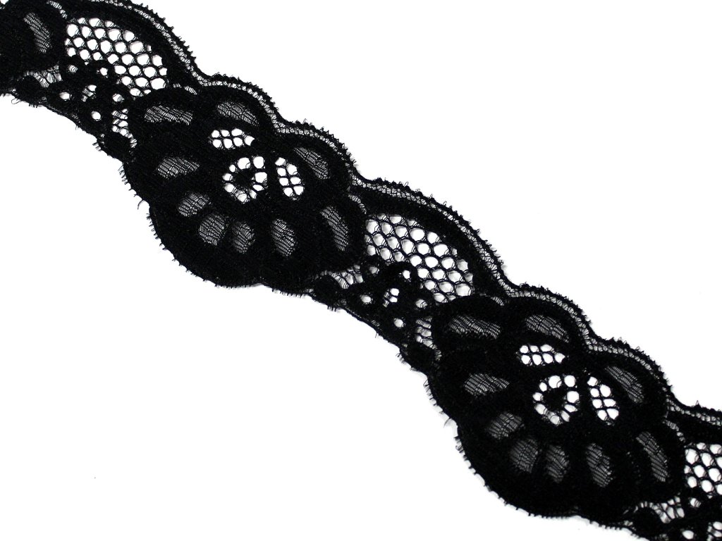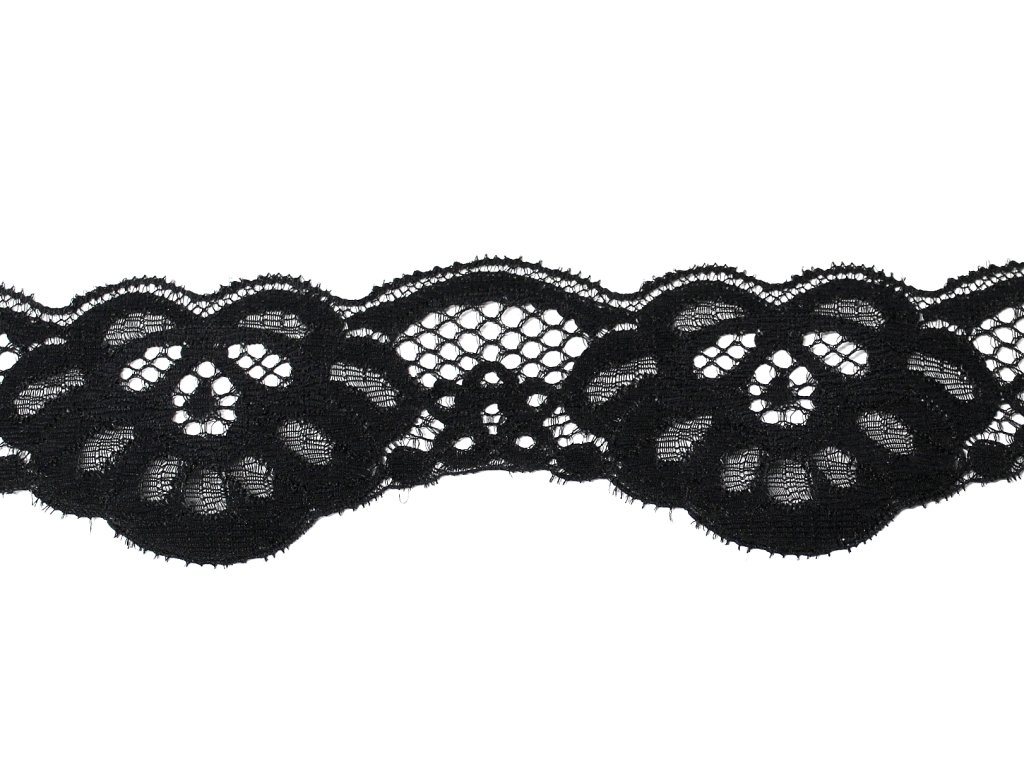 Klasická pevná krajka s motivy květin, v černé barvě a šíři 50mm.
