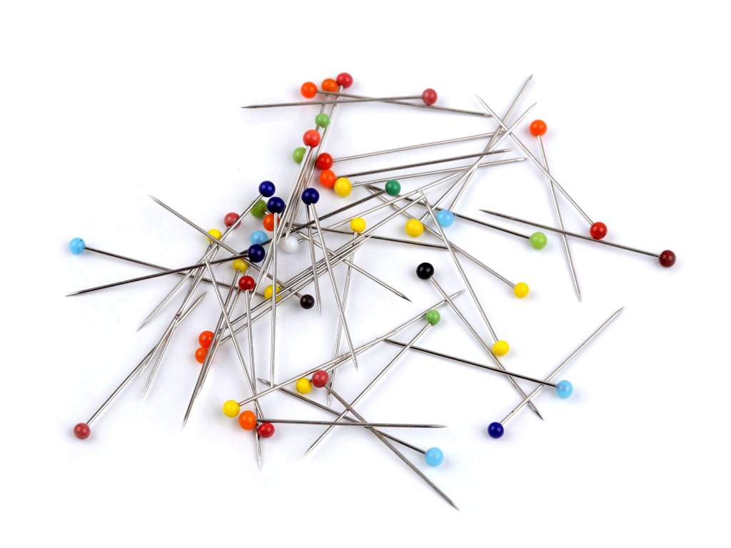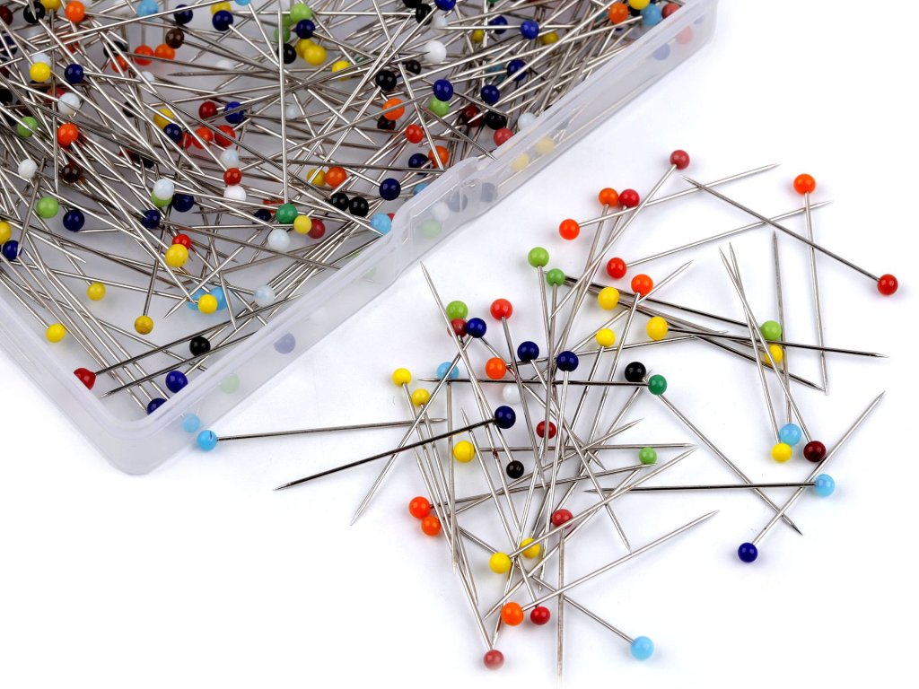 Napichovací špendlík se skleněnou hlavičkou ve velkém balení 500ks pro široké využití při šití, výrobě i opravách všeho druhu.