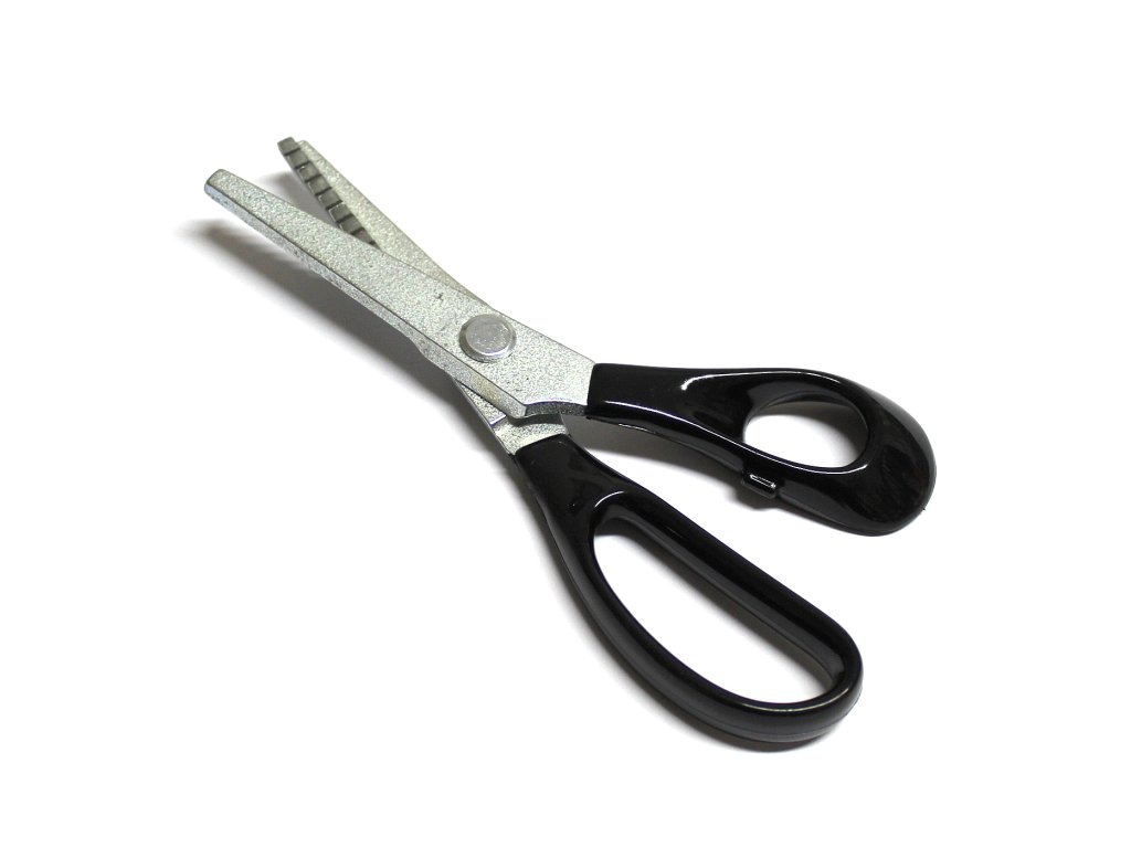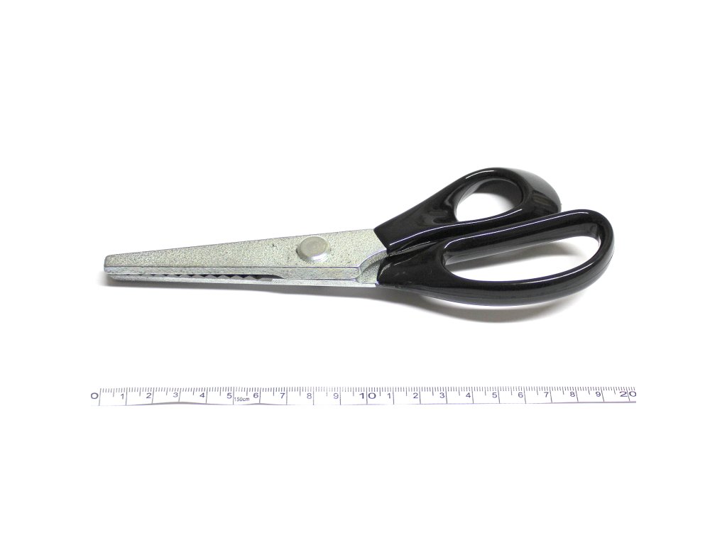 Klasické krejčovské entlovací nůžky s cik-cak ostřím pro pečlivé stříhání látek a textilu, v celkové délce 20cm.