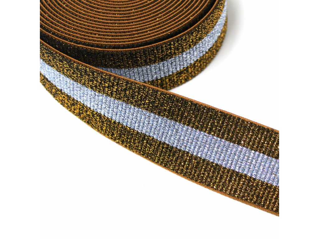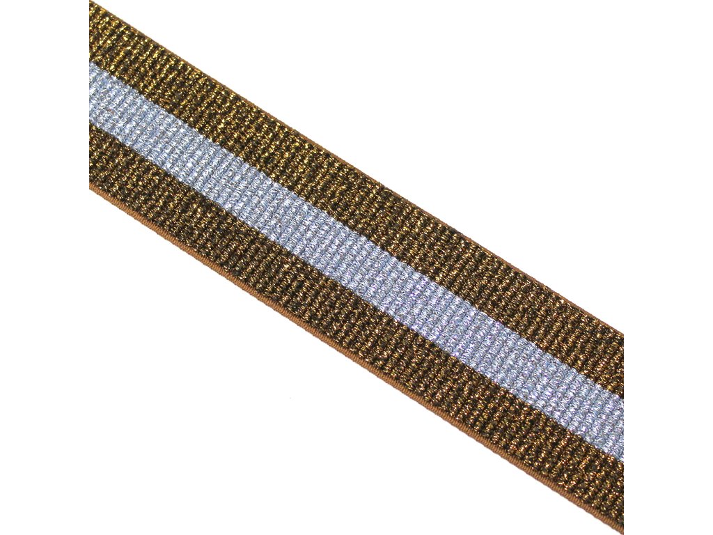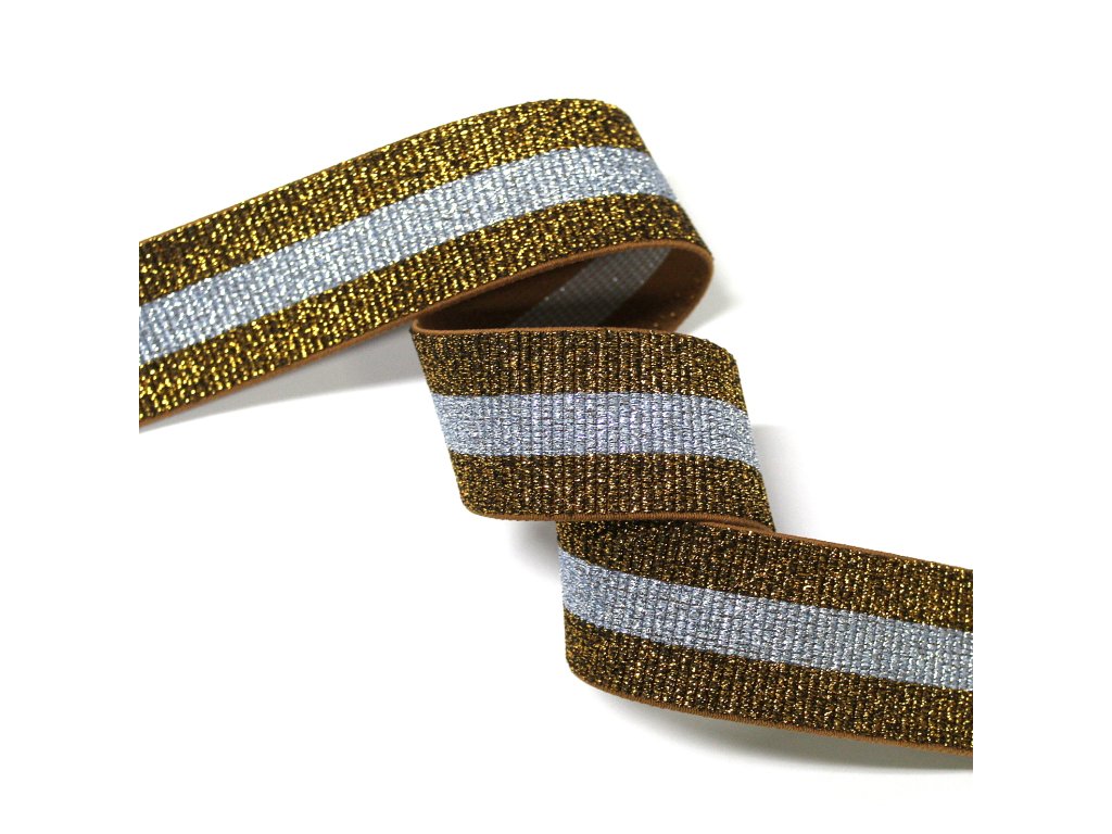 Módní ozdobná pruženka třpytivá ve zlaté barvě se stříbrným proužkem uprostřed.