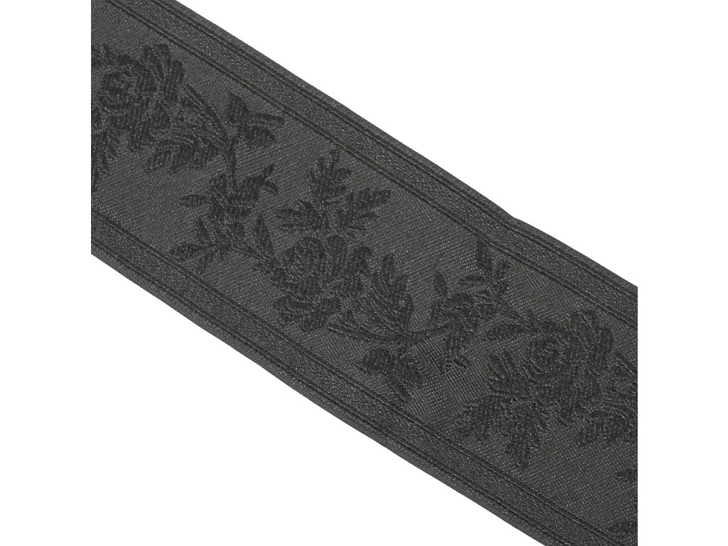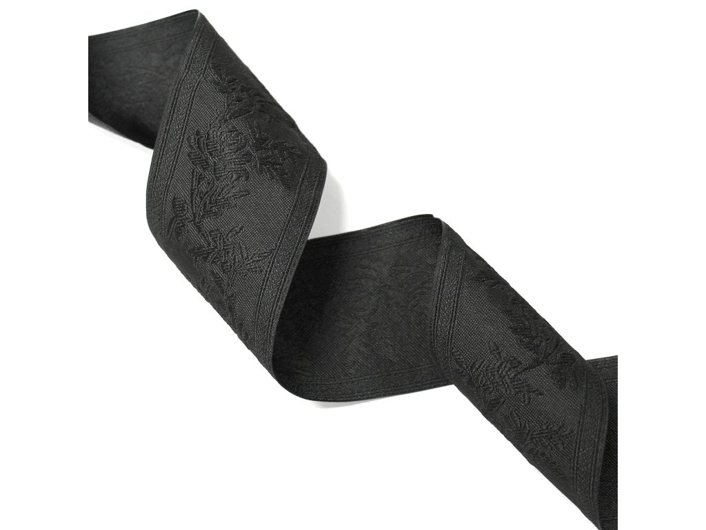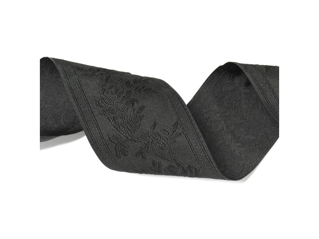 Ozdobná prýmka s vtisknutým jemným motivem květin. V šíři 55mm. V černé barvě.