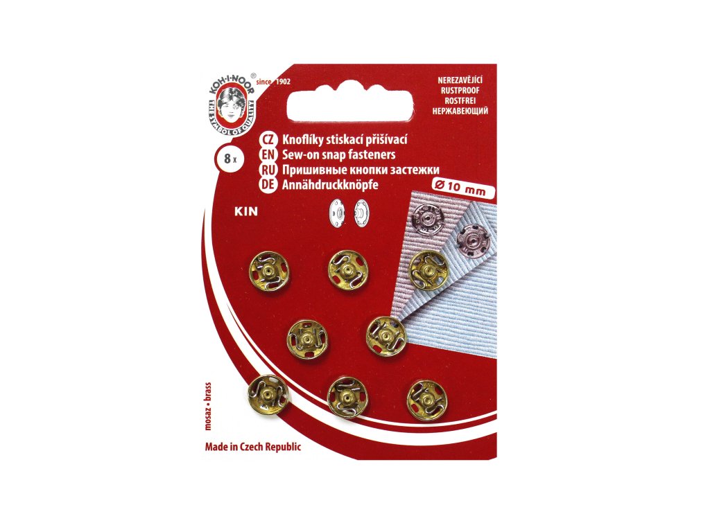 Klasická kovová patentka - přišívací stiskací knoflík, od českého výrobce Koh-i-noor