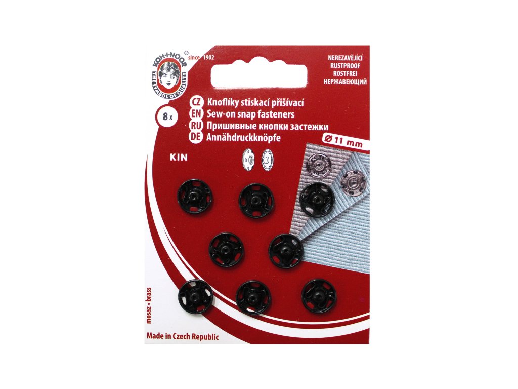 Klasická kovová patentka - přišívací stiskací knoflík, od českého výrobce Koh-i-noor