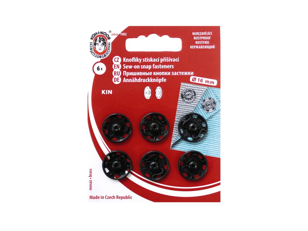 Klasická kovová patentka - přišívací stiskací knoflík, od českého výrobce Koh-i-noor