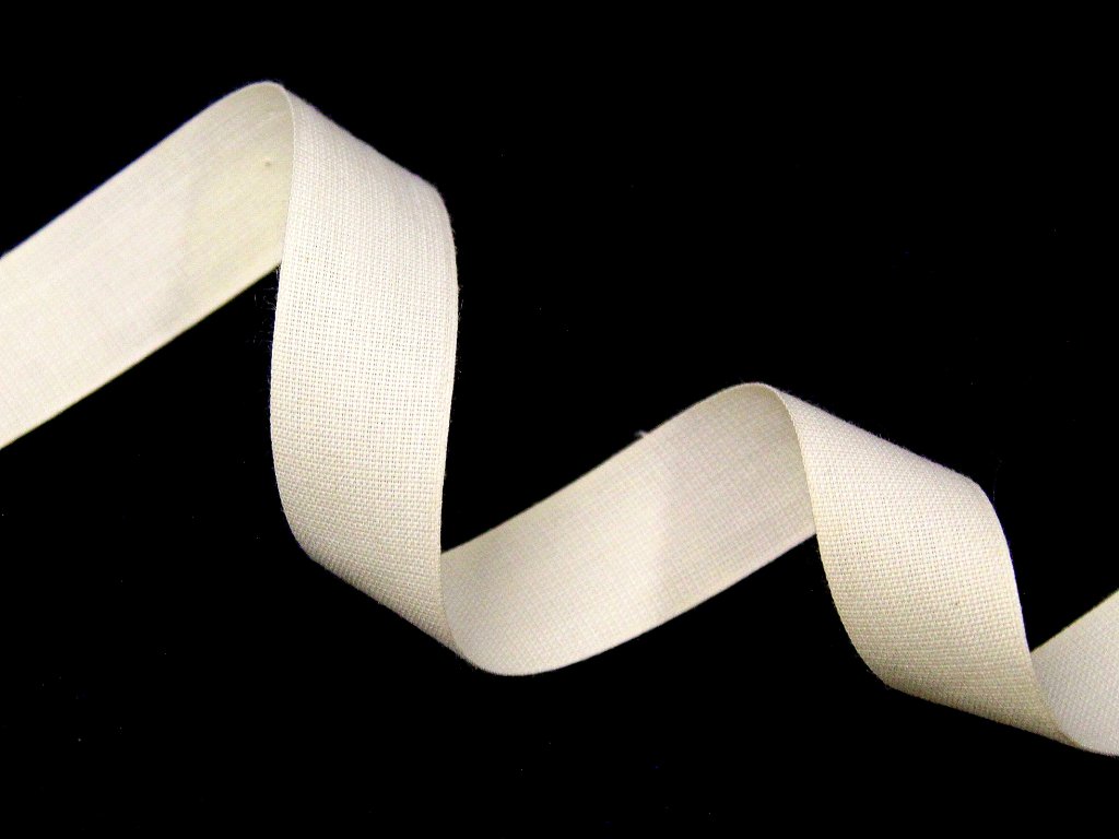 Tenká, jemná bavlněná stuha / tkaloun s plátnovou vazbou.