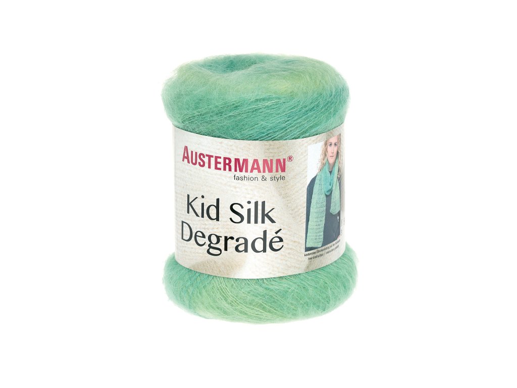 Práce s touto přízí je velmi rychlá, zvláště při použití transparentních pletacích vzorů krajkového typu. Příze Kid Silk Degradé je vhodná především pro dámskou módu, ať již svetry, kabátky či kabáty nebo pro oděvní doplňky, především šály.