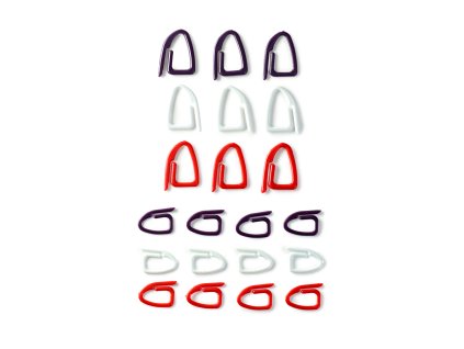 Balení obsahuje 2ks počítadel řad, na menší jehlice (pro síly 2,5 - 4 mm) ve světle fialové barvě a pro větší jehlice (4,5 - 7 mm) v tmavě fialové.