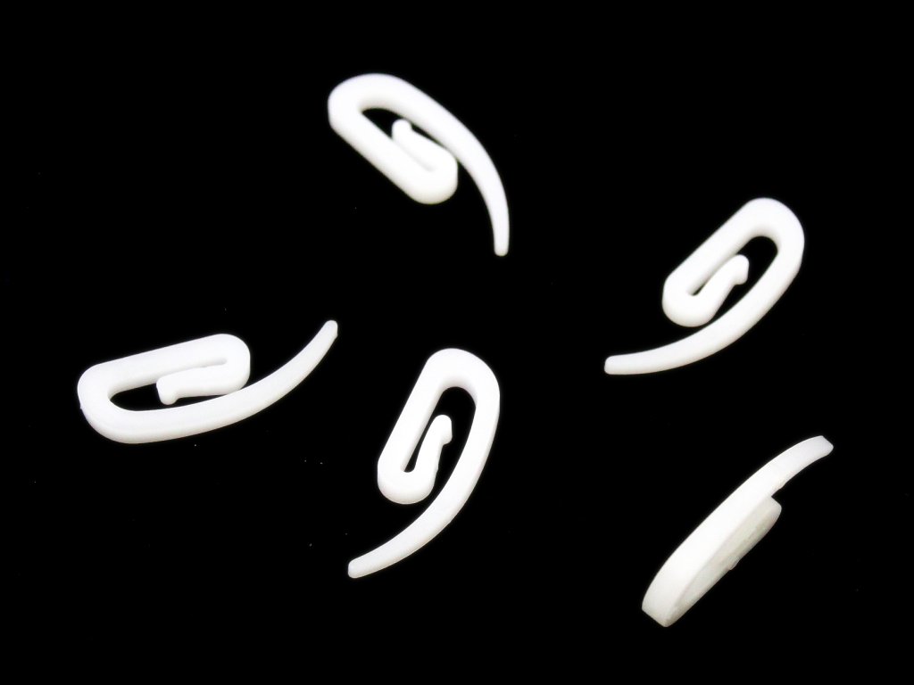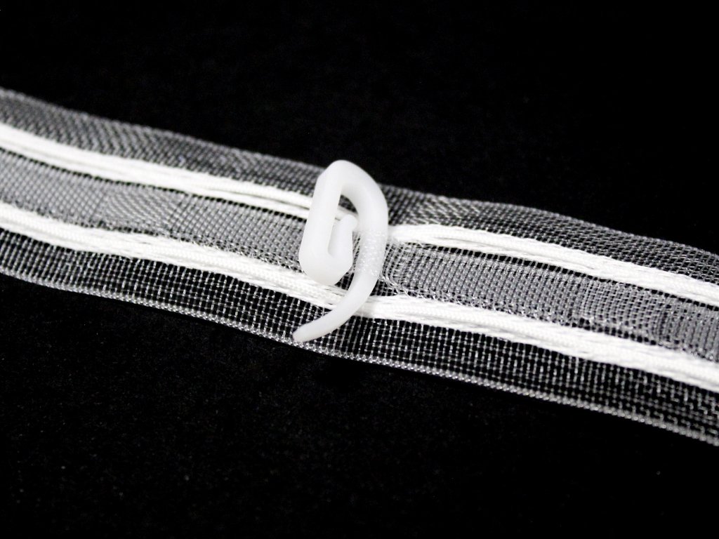 Háček na záclony "šnek" v plastovém provedení je lehký ale pevný a umožňuje připevnění záclon na lištu nebo záclonovou tyč u okna.