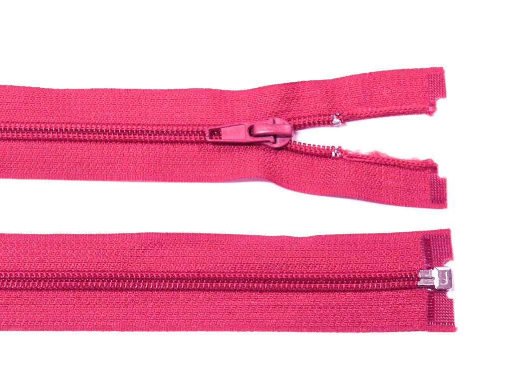 Klasický plastový zip spirálový, rozepínací s jedním jezdcem.