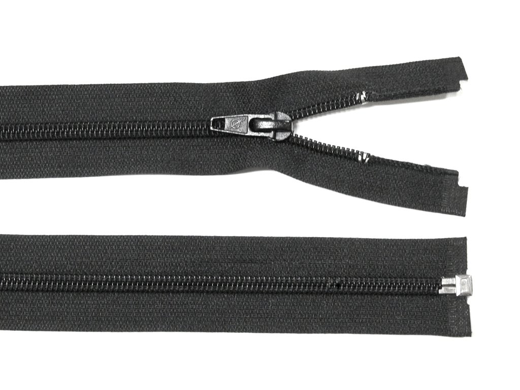 Klasický plastový zip spirálový, rozepínací s jedním jezdcem.
