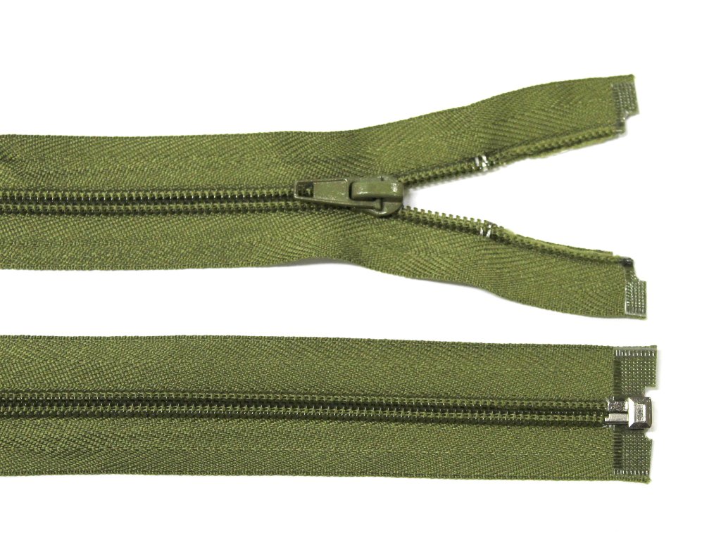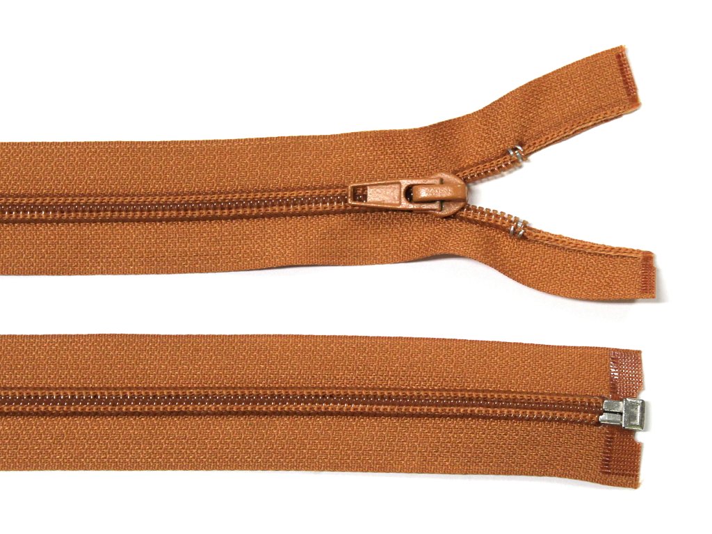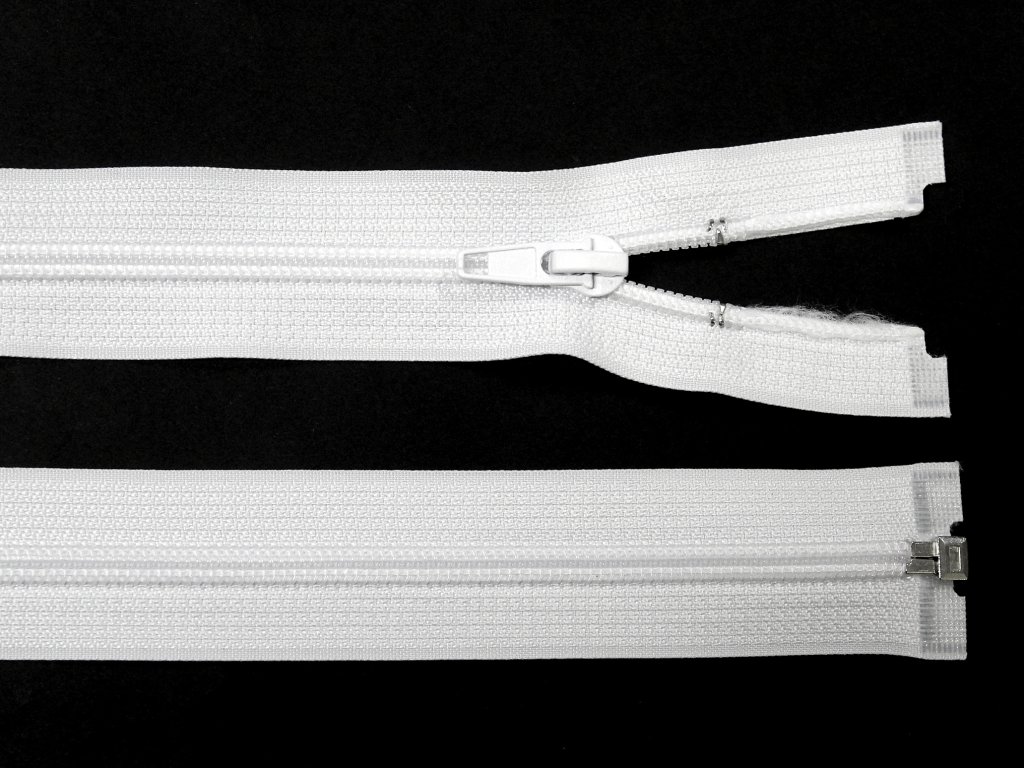 Klasický plastový zip spirálový, rozepínací s jedním jezdcem.