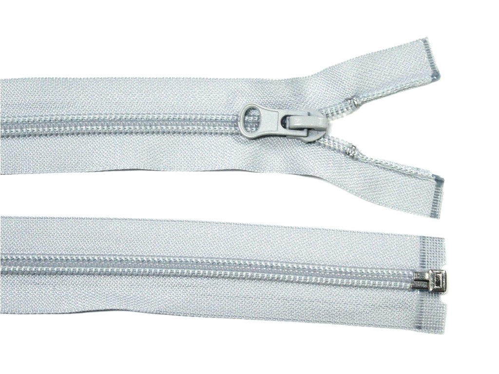 Klasický plastový zip spirálový, rozepínací s jedním jezdcem.