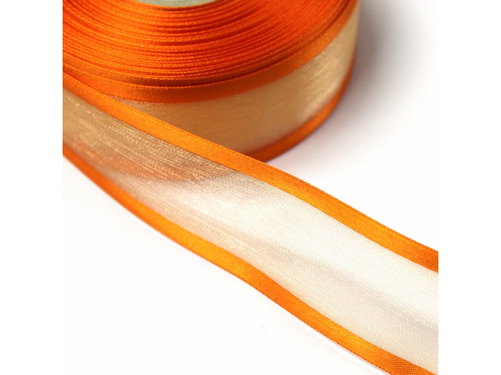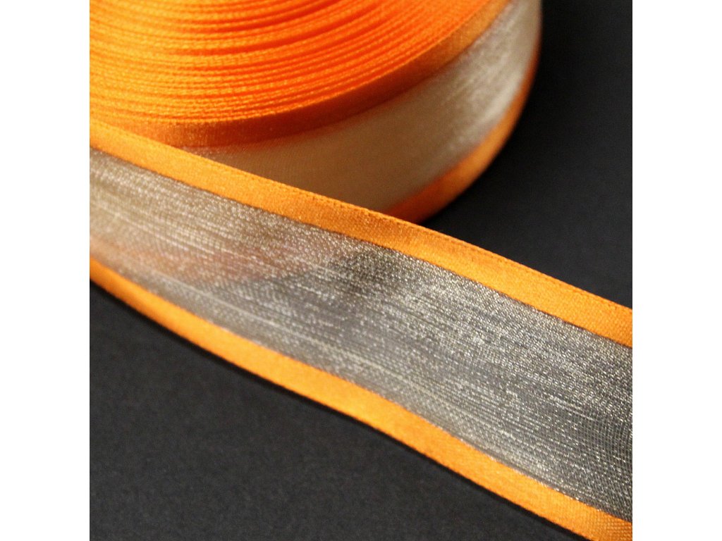 Dekorační oranžová stuha atlasová s průsvitným monofilem
