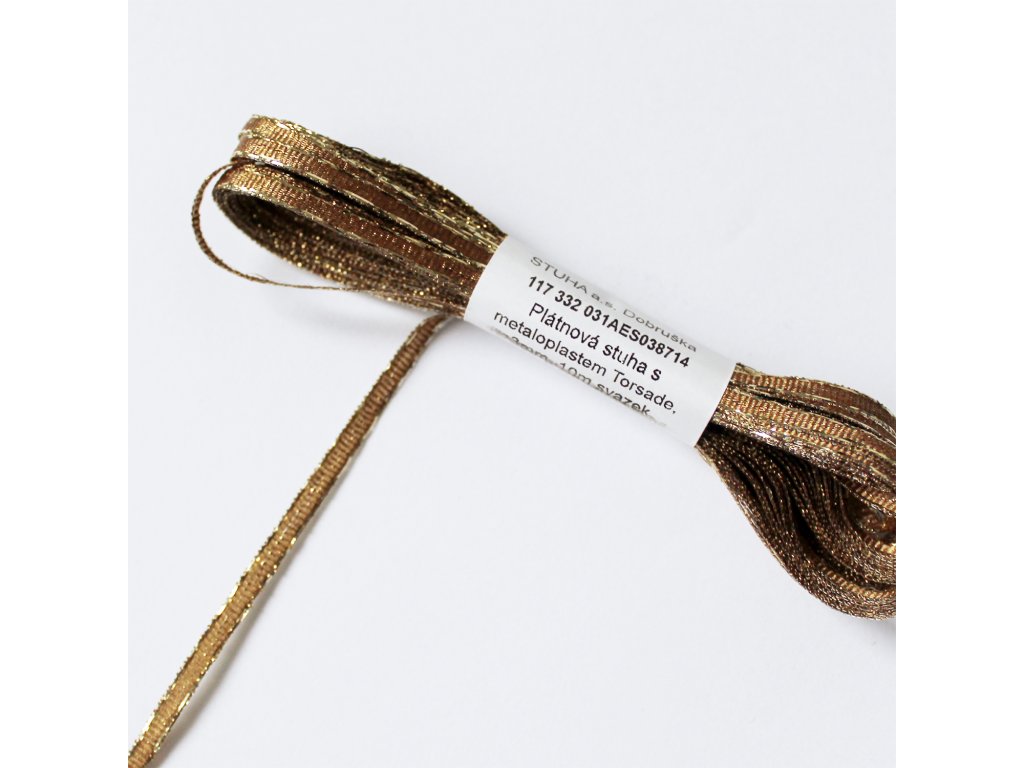 Stuha plátnová s metaloplastem Torsade, v šířce 3mm, svazek 10 metrů.