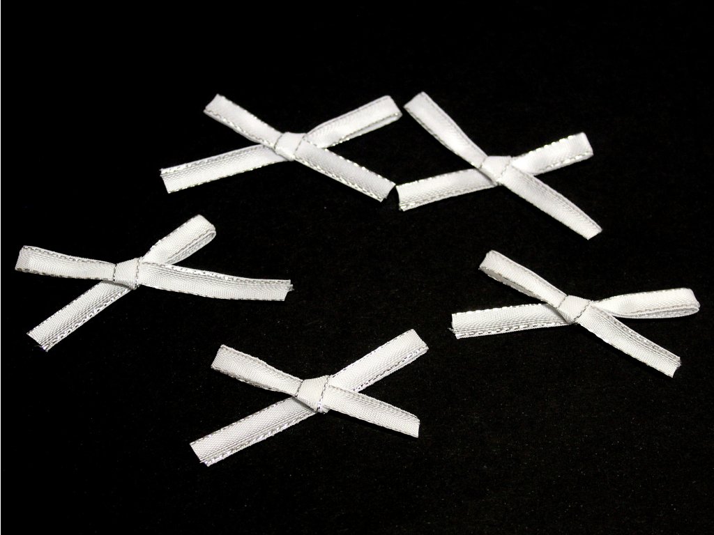Sada mašliček z taftové stuhy, vhodné na dekorace - od svatebních stolů, dárků, kytic, doplňků, tak i jako zpestření dalších mnoho výrobků. Je možné je nalepit nebo přišít.