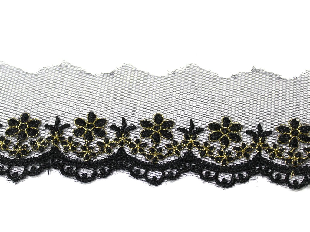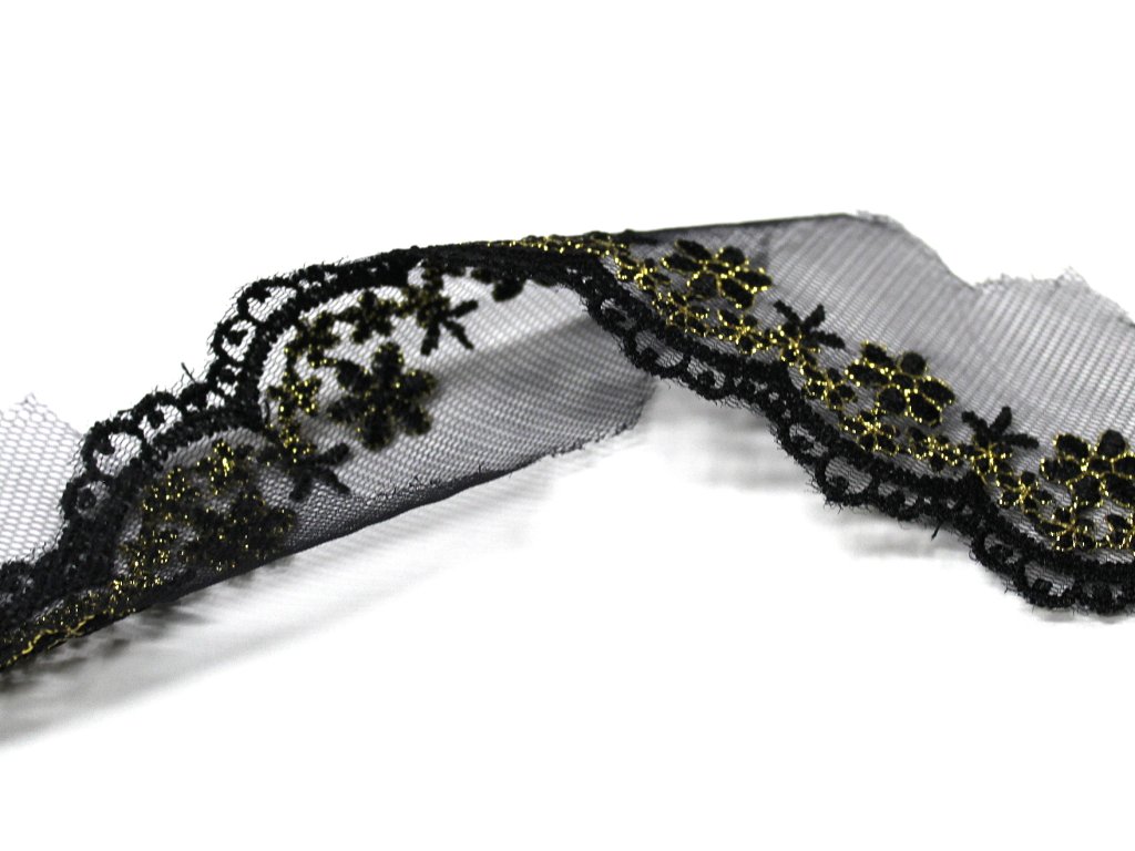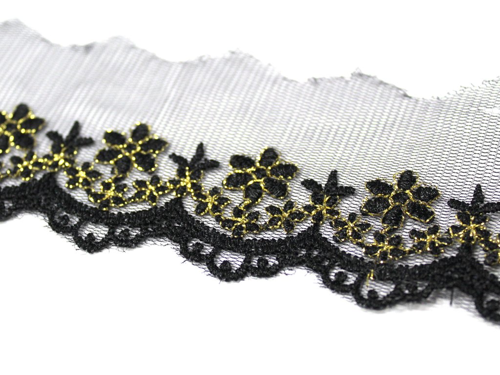 Vyšívaná krajka na tylu 50mm 725301 černá