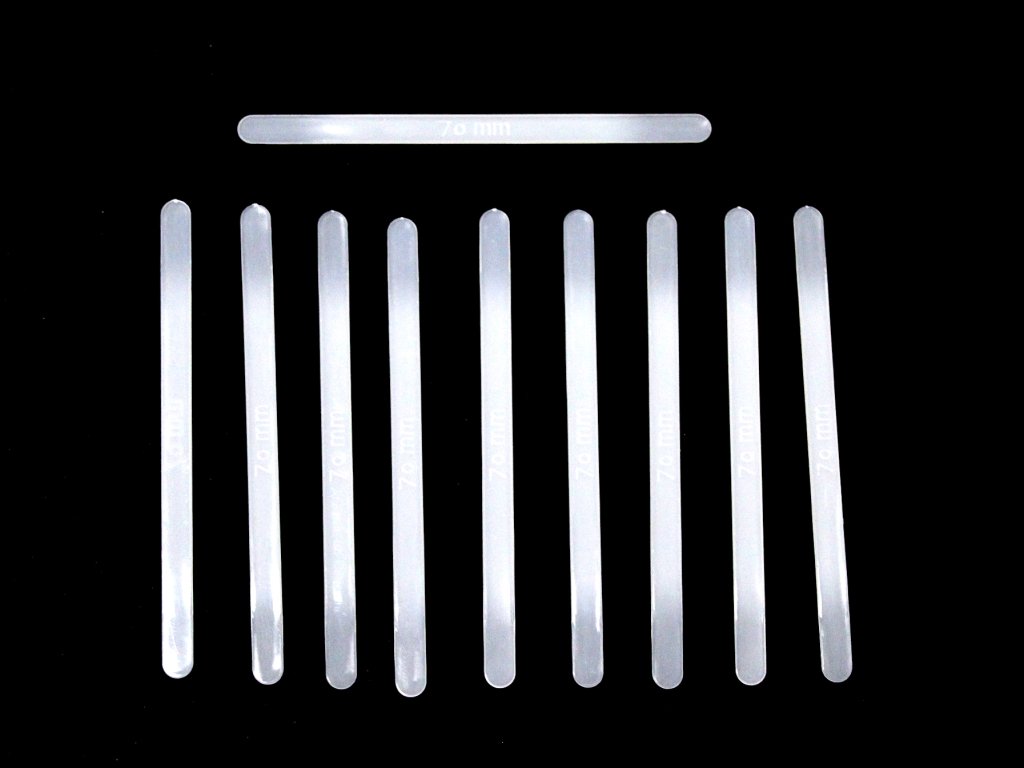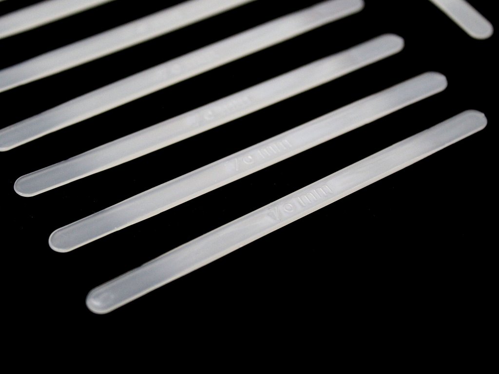 Průhledné ploché plastové kostice na zpevnění košíčků podprsenek, košilek, korzetů, límců a dalšího prádla.